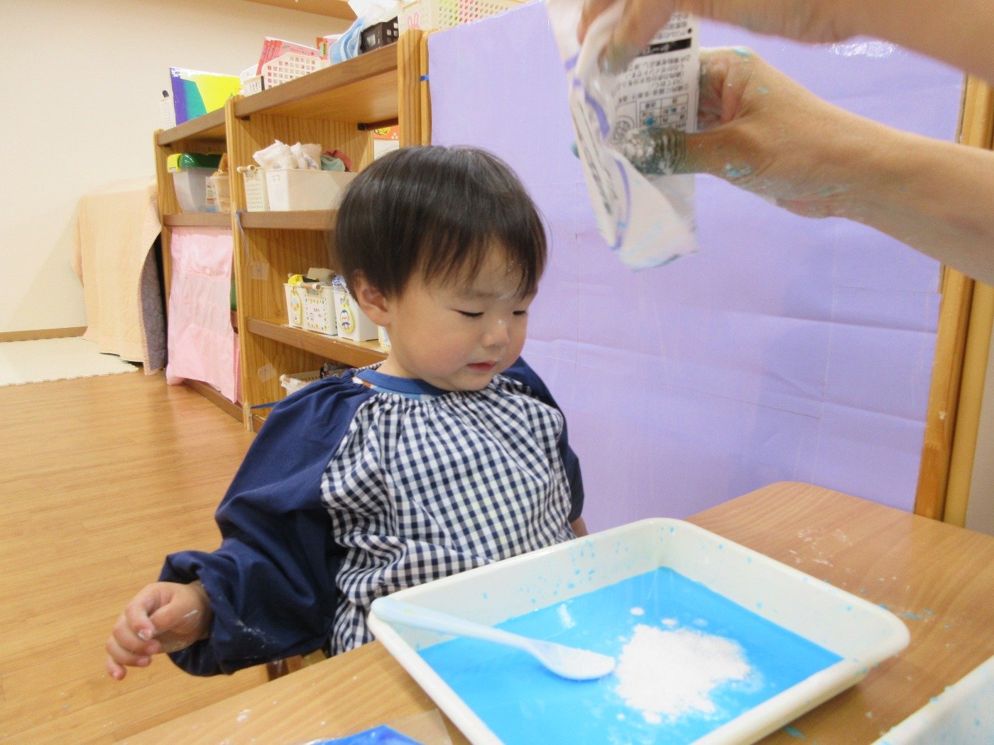 片栗粉の感触を楽しみました。