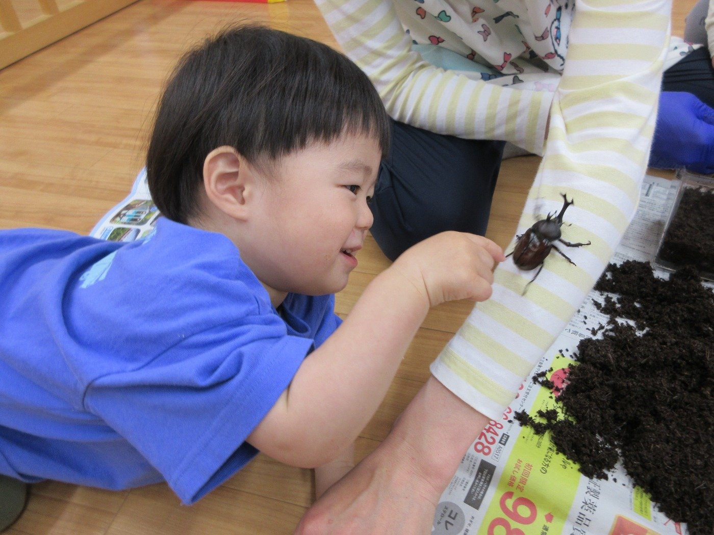 園で飼育しているカブトムシ! 土の入れ替えをしました。