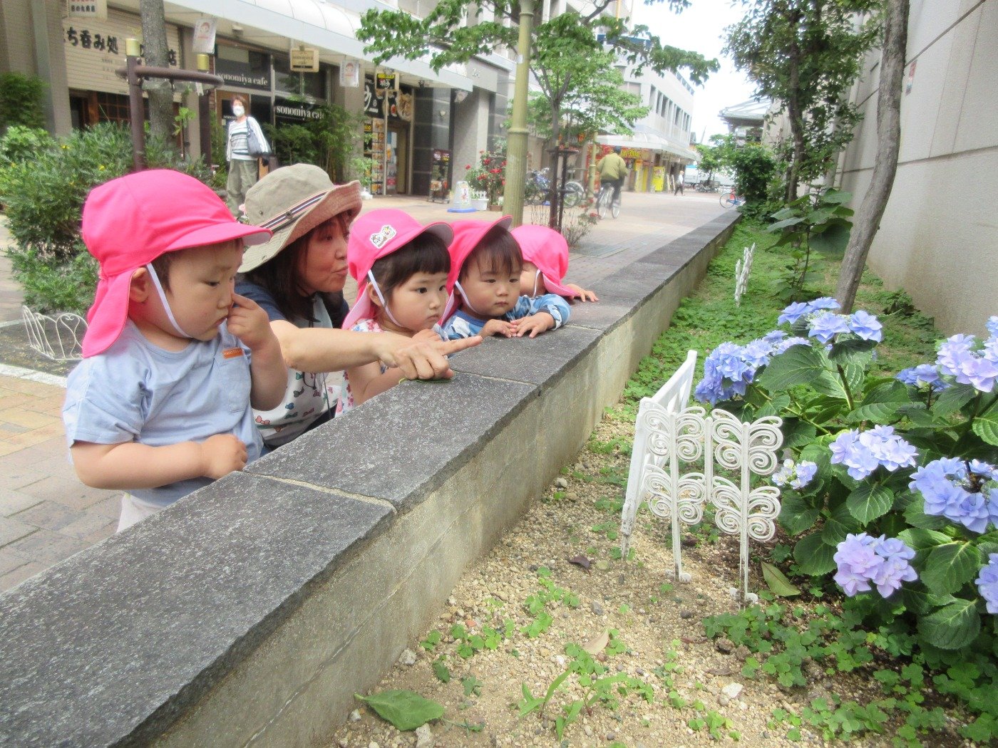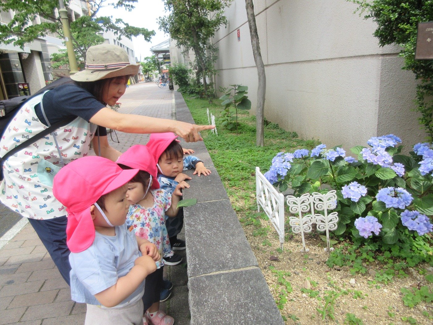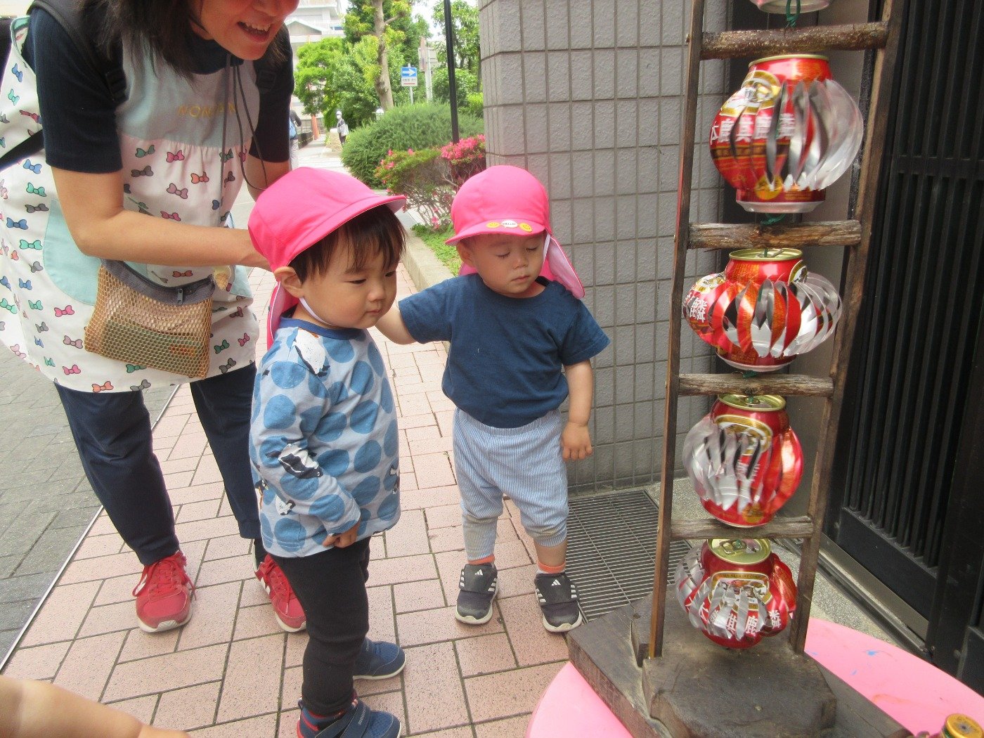 お散歩の道中、子ども達といろんな発見を喜び自然物の不思議!にも興味が持てるよう