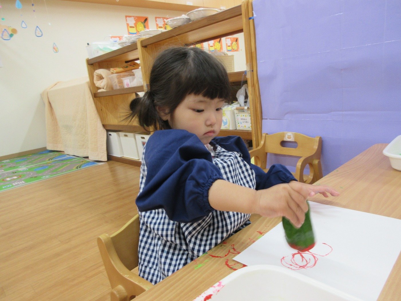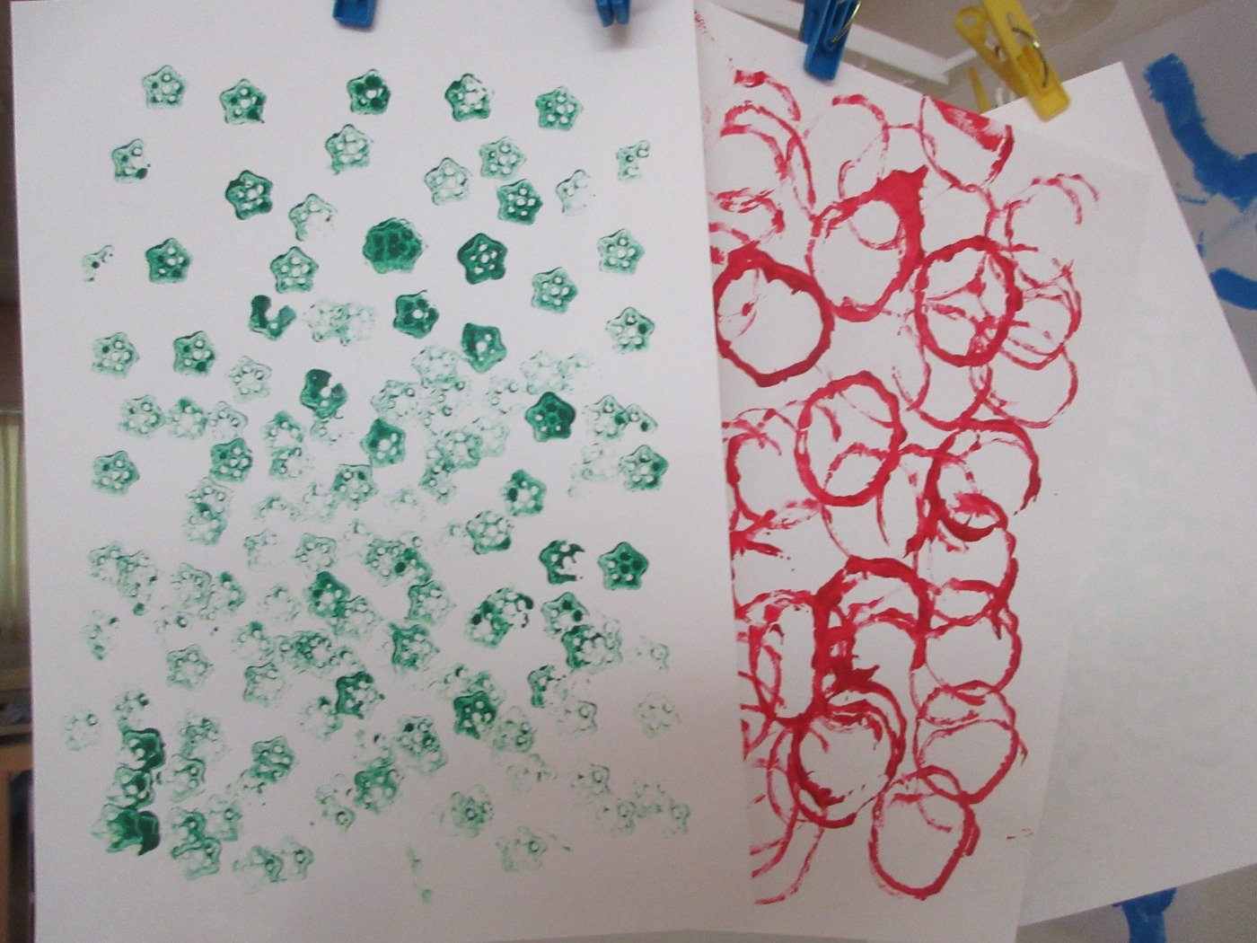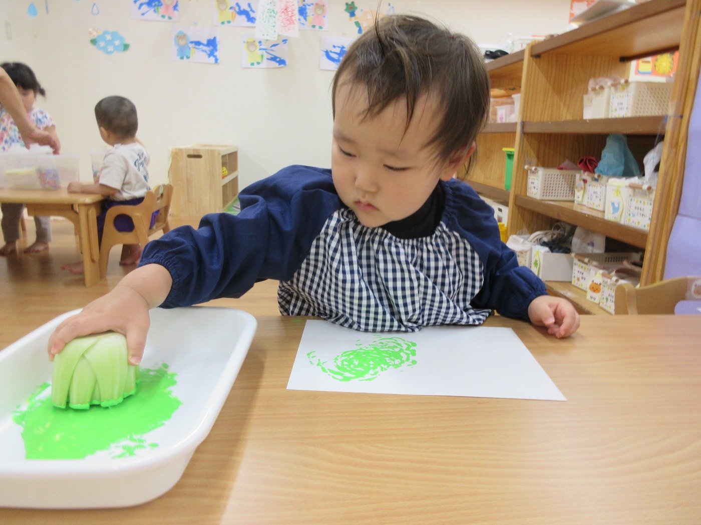 スタンプをした跡を、「うわっ!」とびっくりしたり、断面をのぞき込んだり。