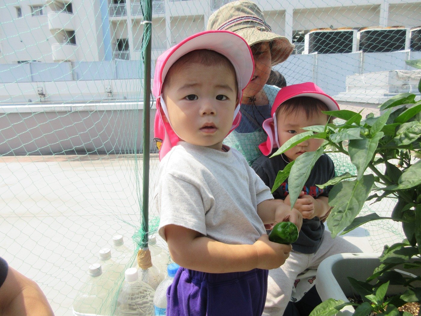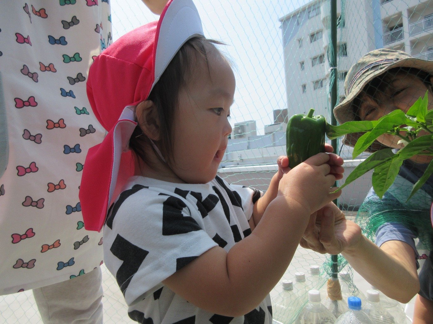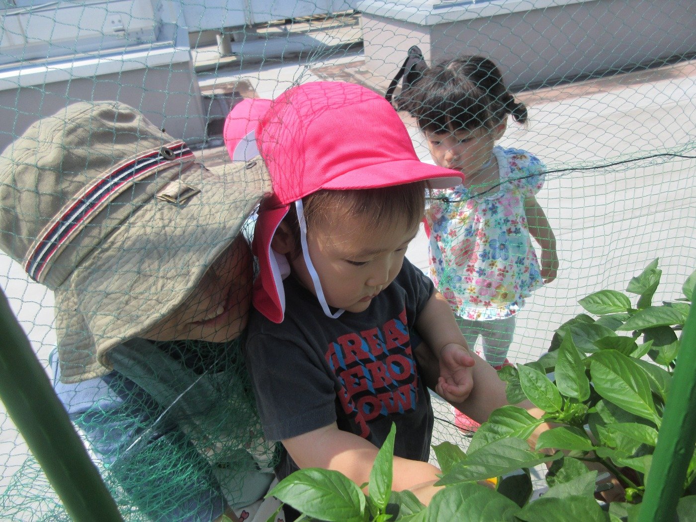 すくすく大きくなっているピーマンを見て、「おぉ~!」と歓声が上がるほど大喜び。