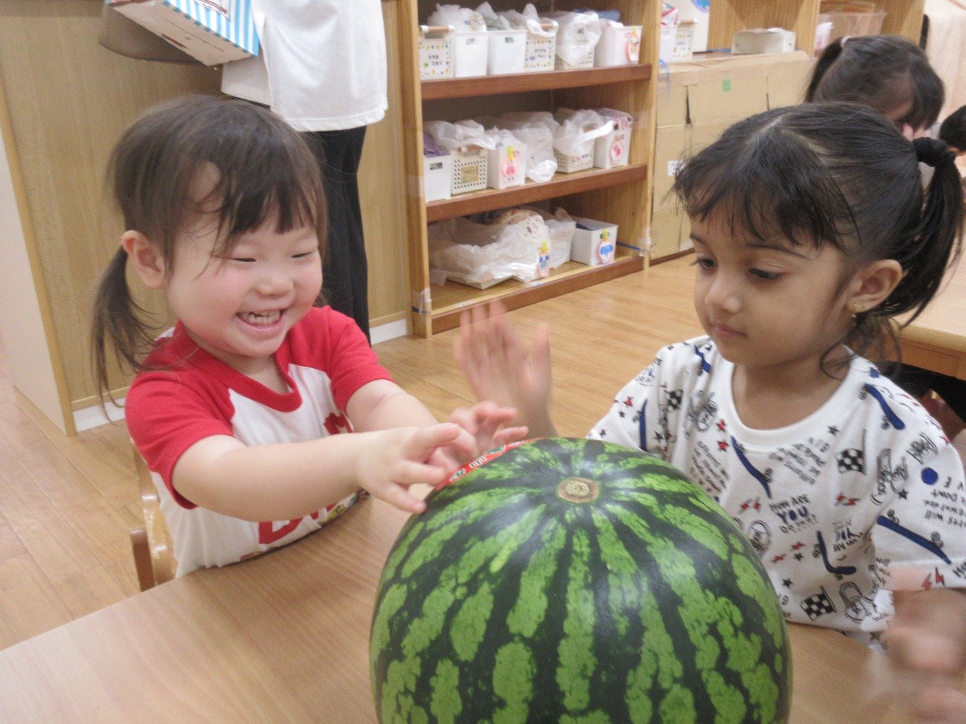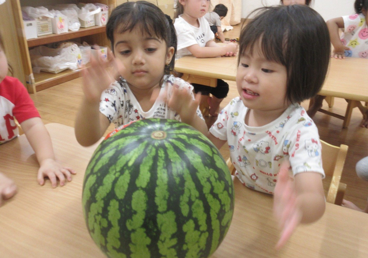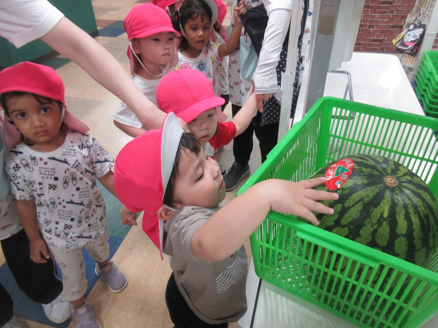 くま組さんに、スイカを買ってきてもらおうとお願いしたところ、