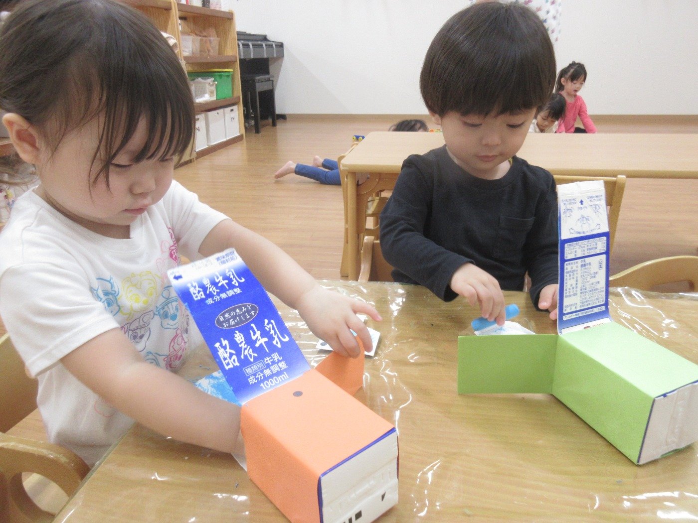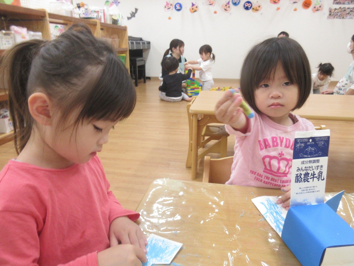 くまぐみさん ホームブログ 2023.10.12 今日はみんなで、お散歩バックを作りました。 上手に色をぬってくれましたよ♪ どんなお散布バックになるかお楽しみに♪ どんぐりや落ち葉、たくさん拾いに行こうね!