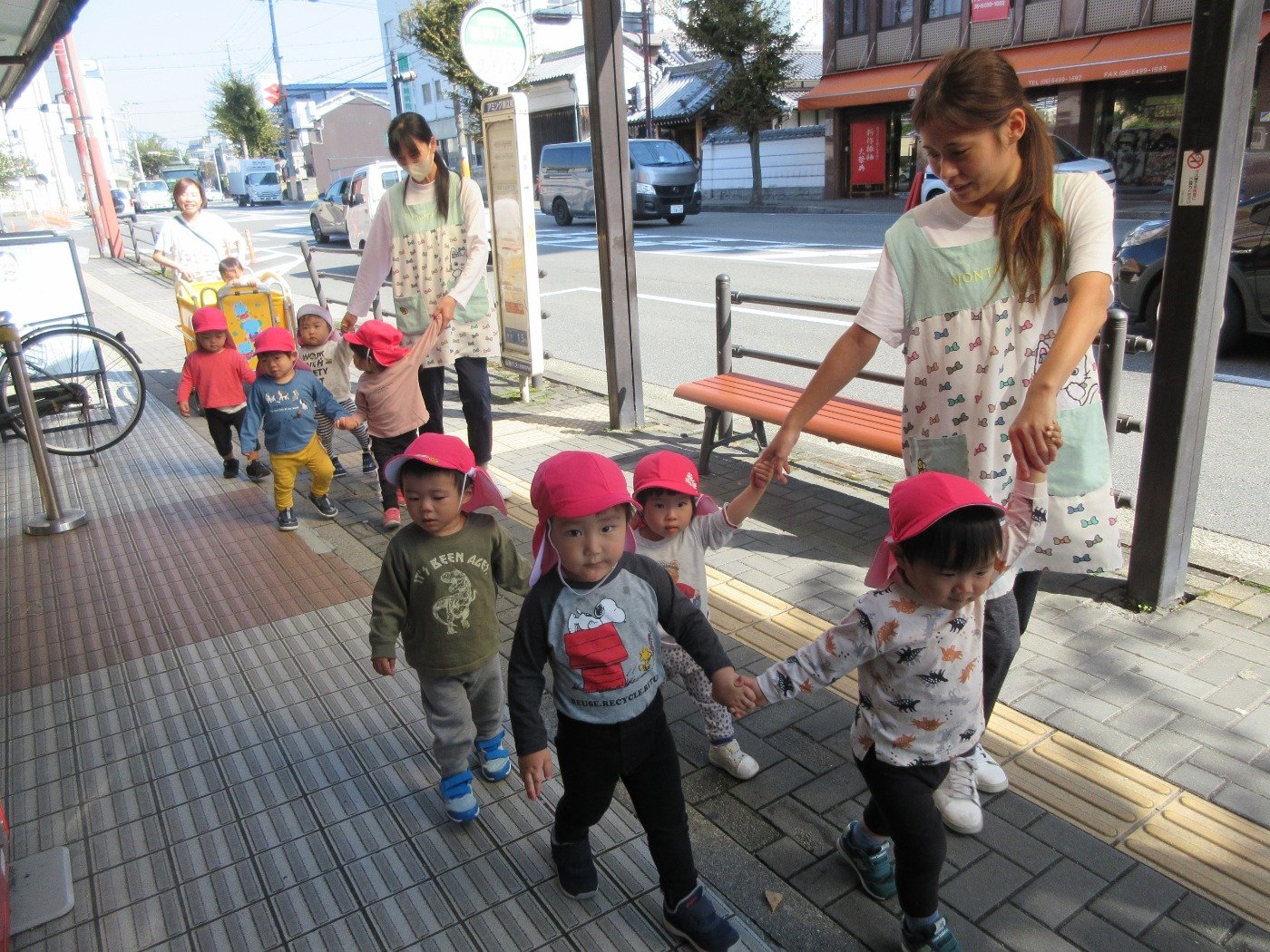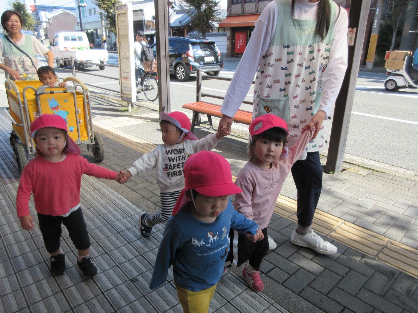 うさぎ組さん ホームブログ 2023.10.16 今日はさわやかな風が心地よいお天気になりましたね。 うさぎ組さん!近所の公園までお散歩に出かけましたよ。 お友だちとお手てを繋いで・・・そうそう!離さないでね!じょうずよ~ と保育者から声を掛けられると 「じょうずでしょ!」「お友だちと一緒、たのしいよ」と表情からあふれんばかりの自信にあふれた子ども達の笑顔がとても可愛いこと😊 今週はお天気が続きそうですね。 明日もみんなで秋探しにでかけようね。