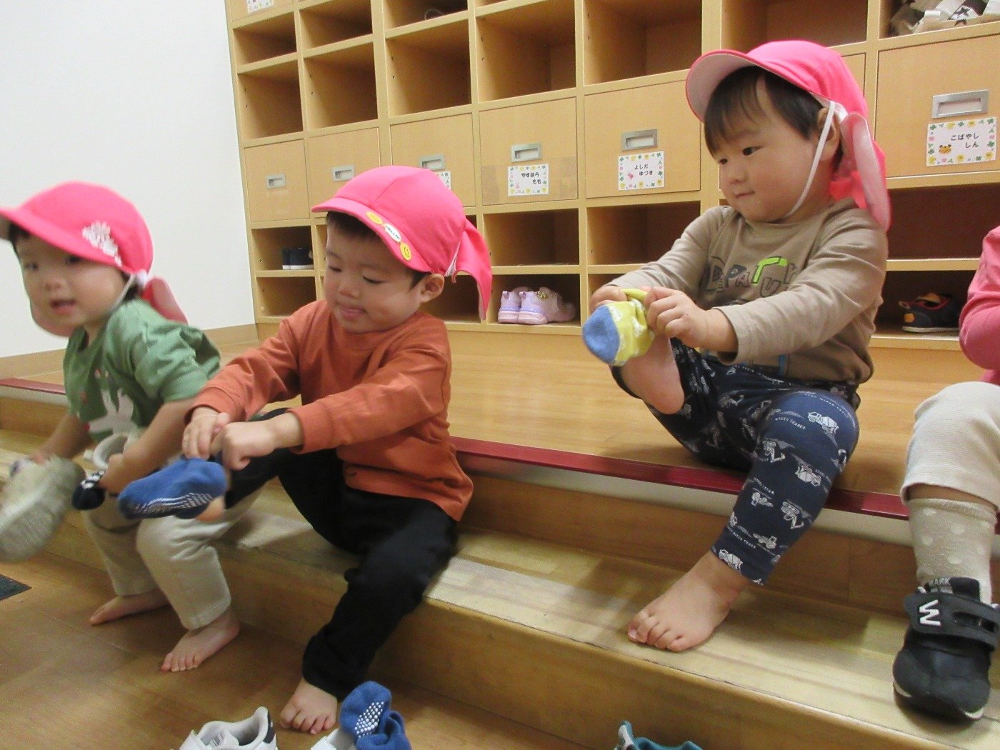身支度も自分で!と頑張る子ども達の姿が可愛くて、思わず パチリと写真を撮りました。