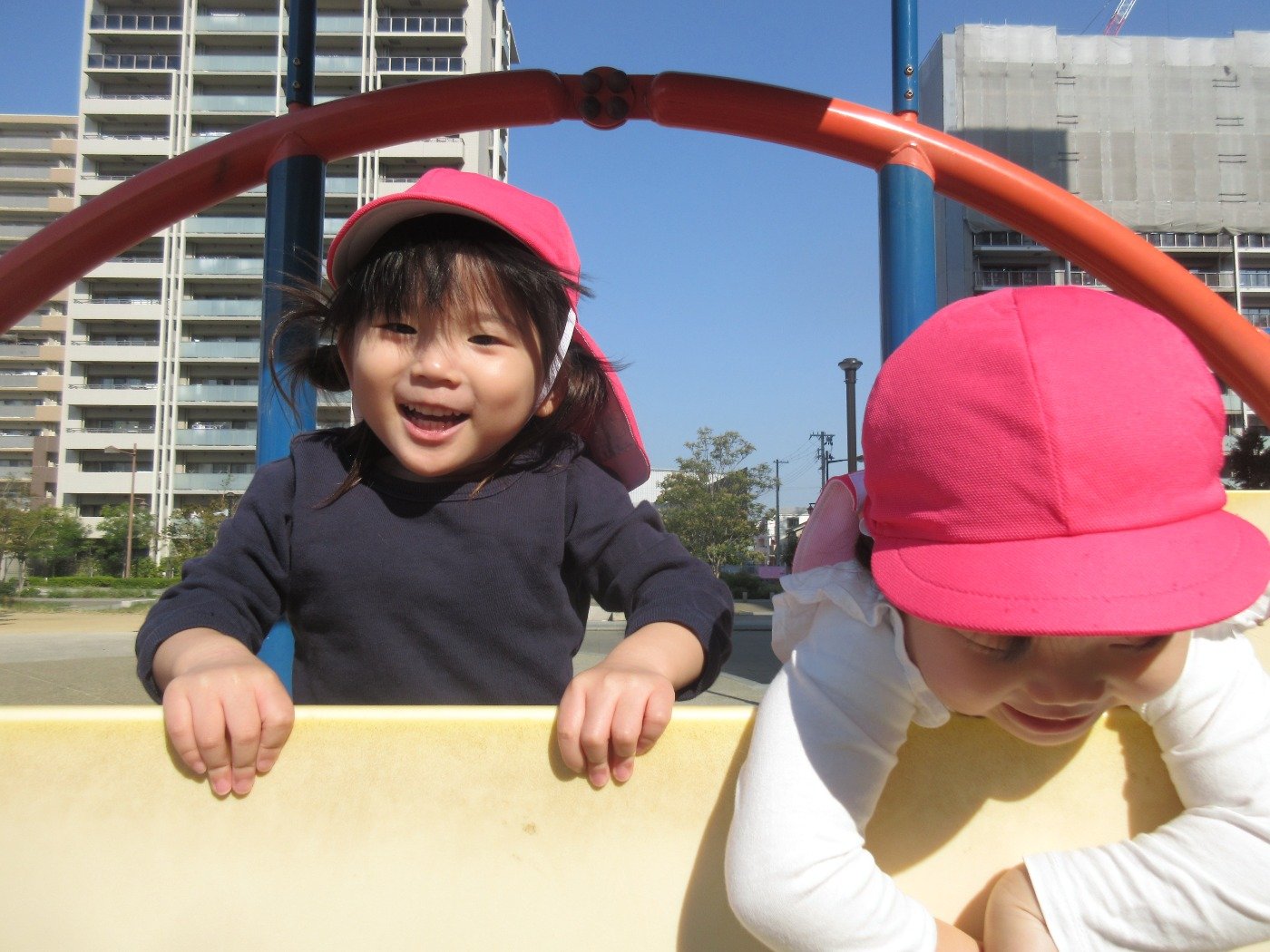 くまぐみさん ホームブログ 2023.11.02 今日は緑遊公園へ遊びに行きました。 道中、「あかいね~」と、赤い葉っぱを見つけたり、 虫の声に「コオロギかな?」と、耳を傾けてみたり、、 秋を沢山感じましたよ。 公園では滑り台の上で「バイバ~イ」と手を振ったり、 「よ~いどん!!」と、かけっこも元気いっぱい走りました! 沢山遊んで楽しかったね♪