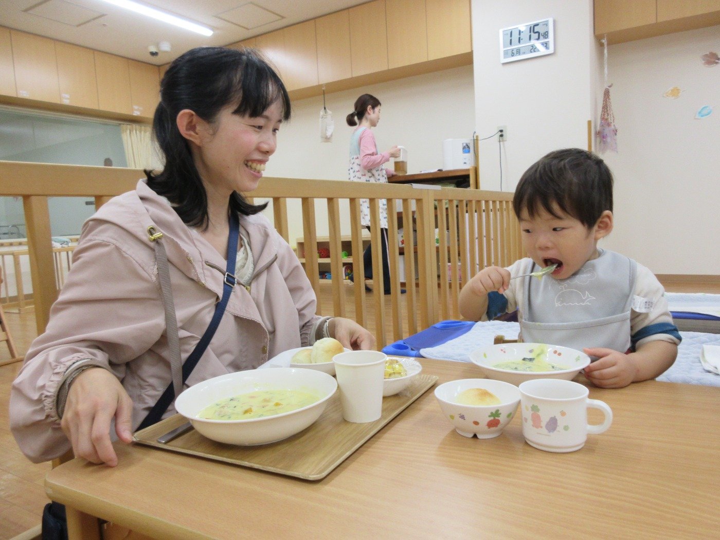 お家の方も、「こんなにたべるんだ!」と驚きのご感想をいただいたり、逆にお家での様子を教えて頂いたりと、私達も子ども達のお家での様子を知ることができ