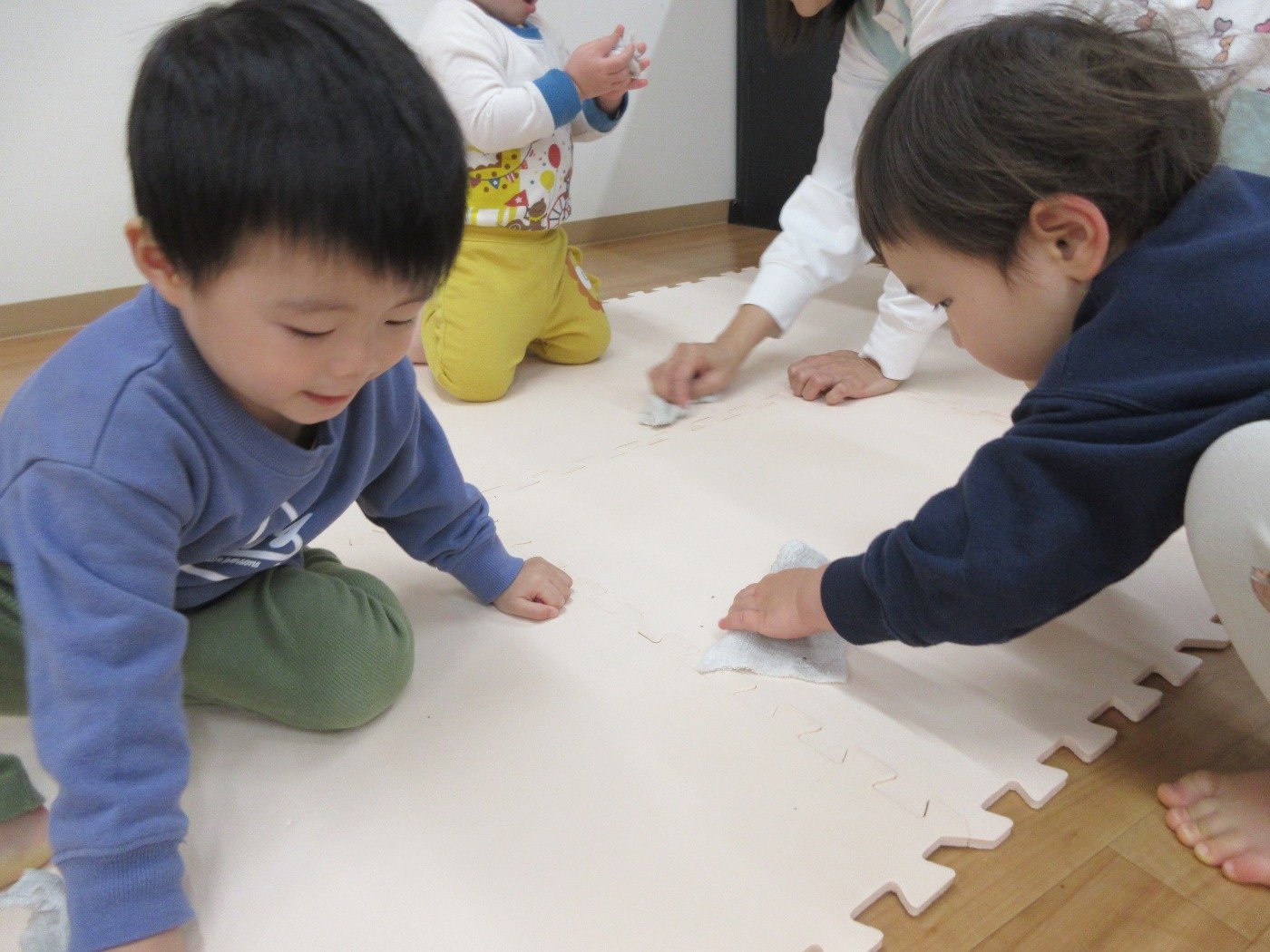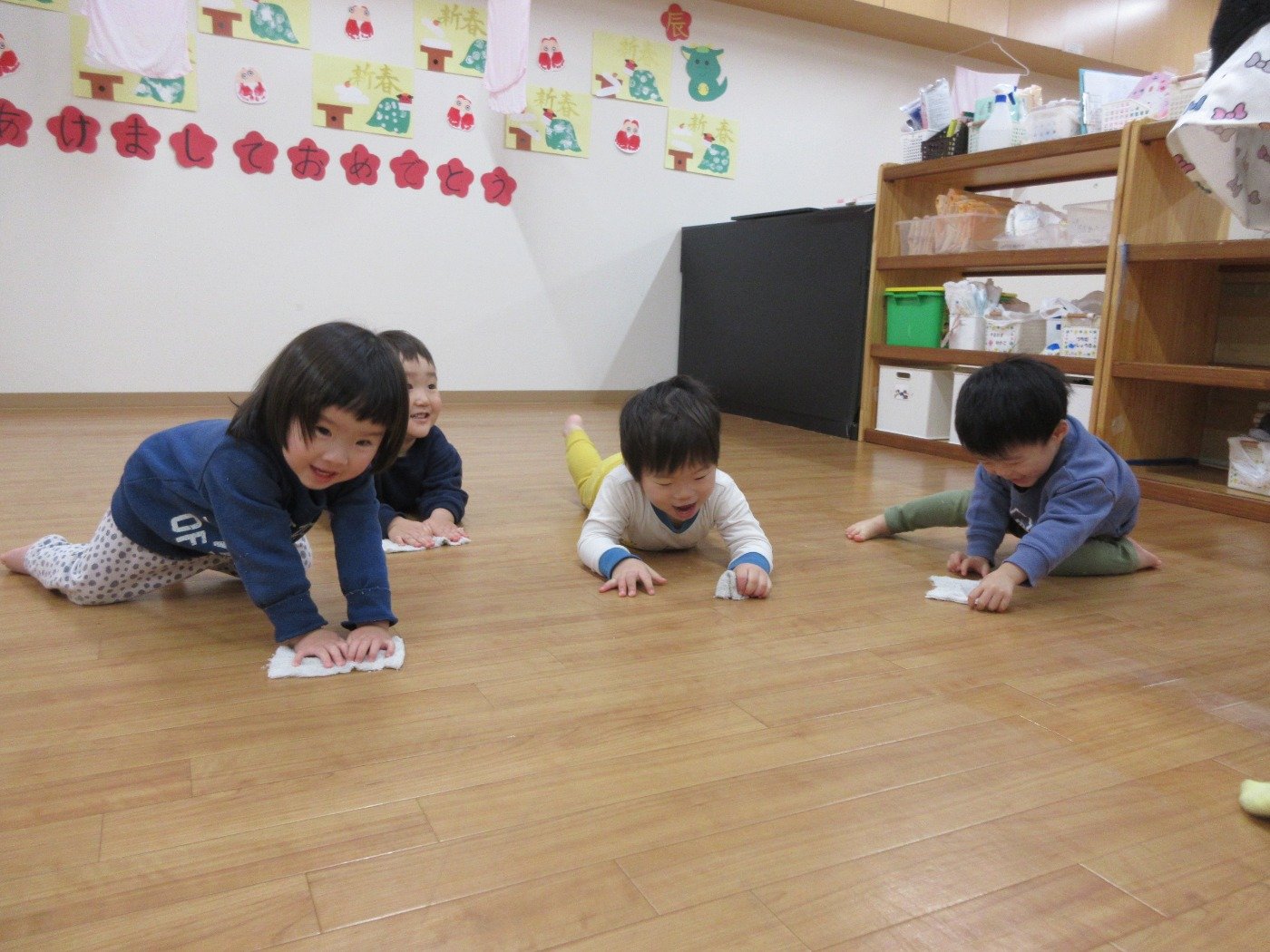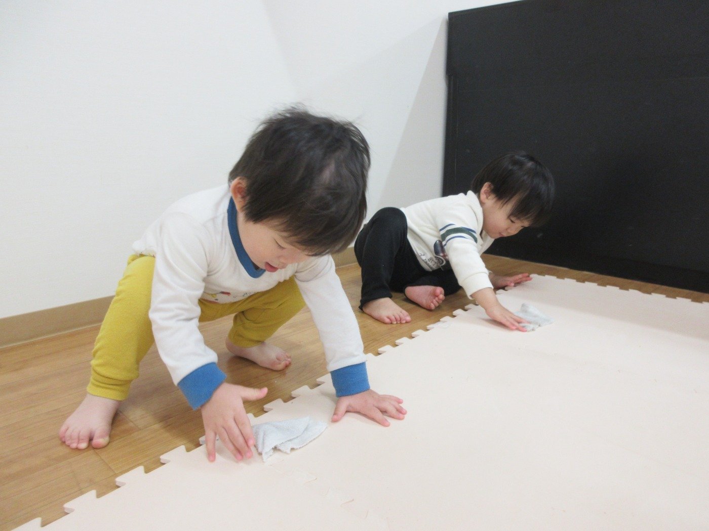 子ども達は遊びの天才!床拭きだってあちこち全身を使ってフル活動!