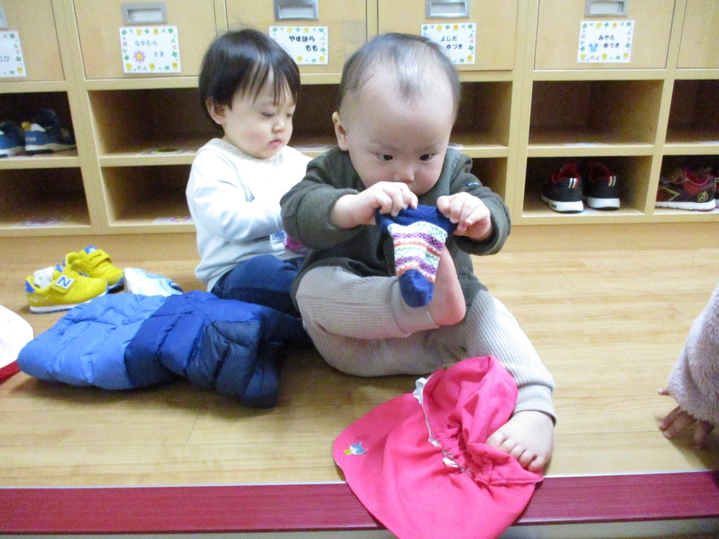 ひよこ組さん ホームブログ 2024.03.11 今日はぽかぽか暖かくお散歩日和になりましたね! 「お散歩にいくよ!」と保育者が声を掛けると・・・ 自分で!と一生懸命身支度を始めたひよこ組sさん。 小さなお手手で靴下をぎゅっと握り、靴下を履こうとするもなかなか定まらない様子。 それでもあきらめずに自分でやってみようとする姿が、なんとも可愛くて。 そんな前向きな気持ちが素敵ですね😊 一歩ずつ成長を感じられる場面に遭遇し、とても幸せな気持ちになりました。