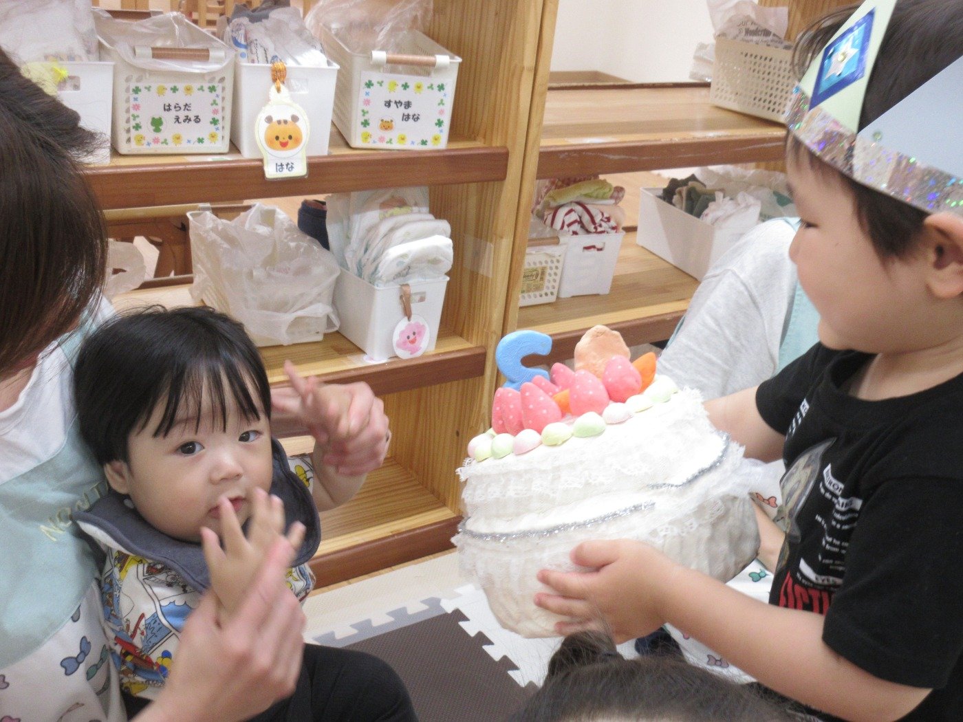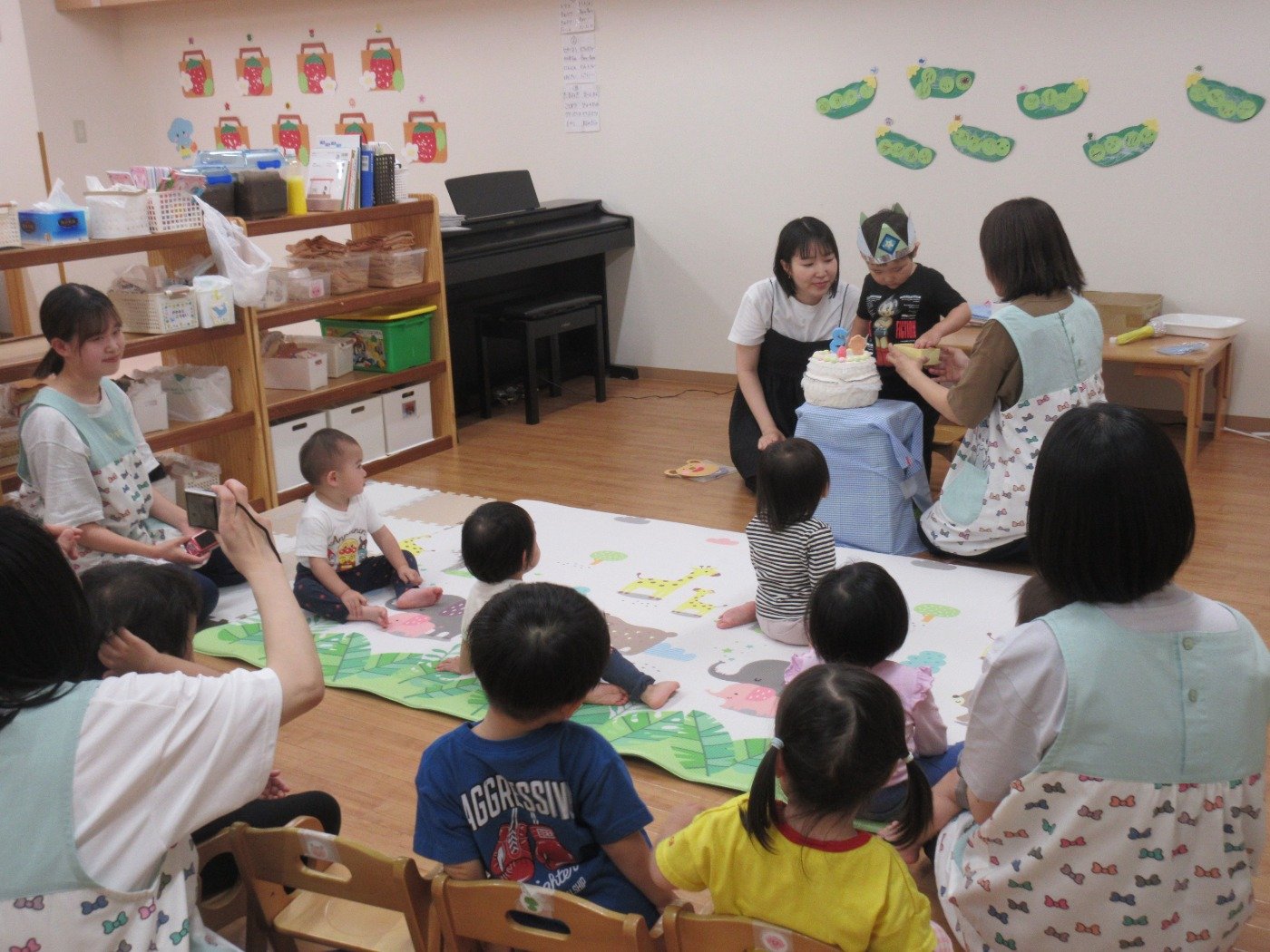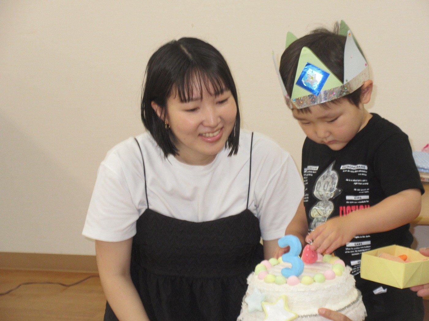 お家の方からもメッセージカードを読んでいただいたり、ケーキのトッピングをして誕生児のお友だちもいいお顔をしていましたよ。