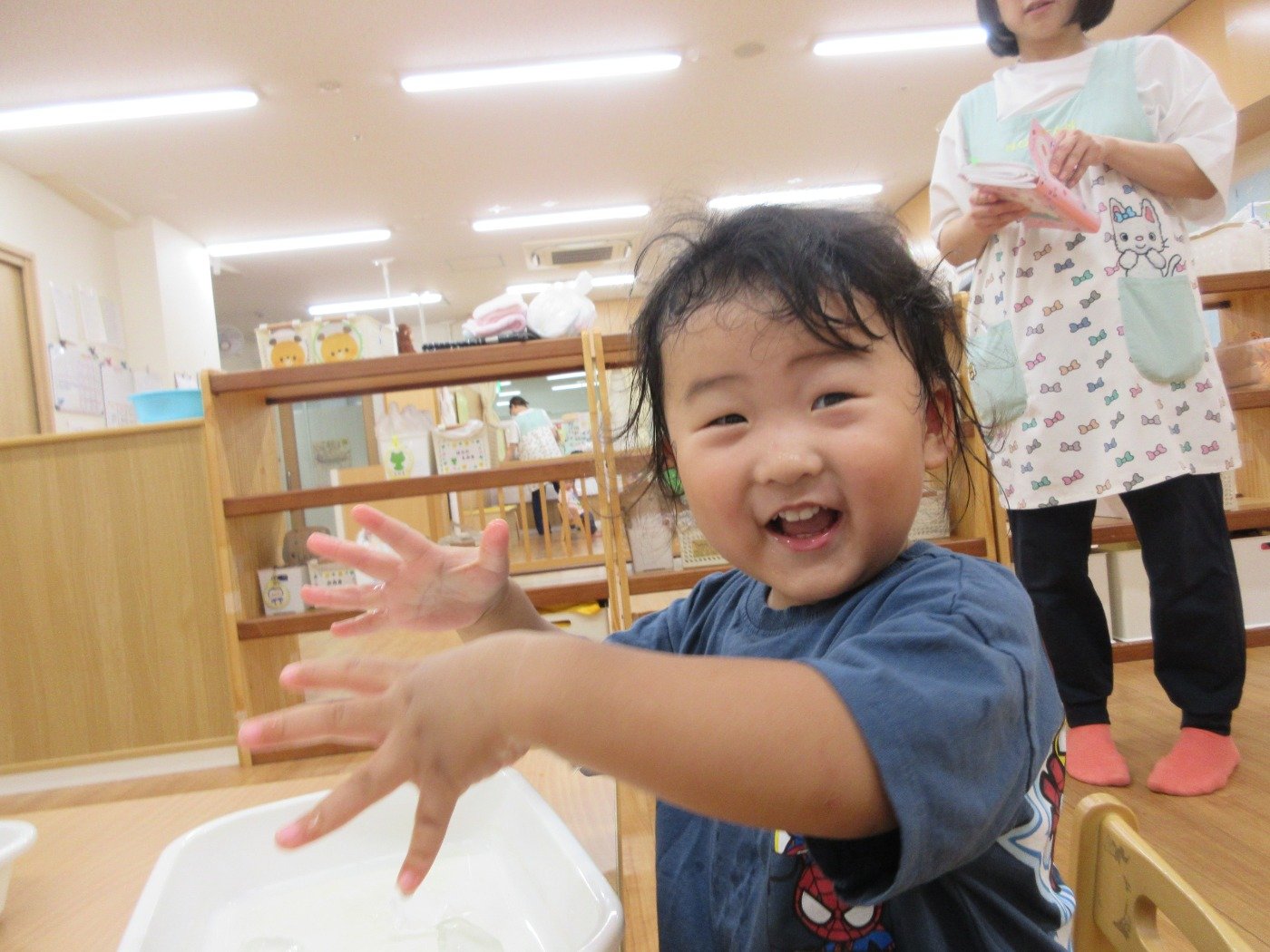 今日から水遊びをスタートする予定でしたが、連休後体調不良のためお休みのお子さんが多かったので、予定を変更して各クラスで過ごしました。