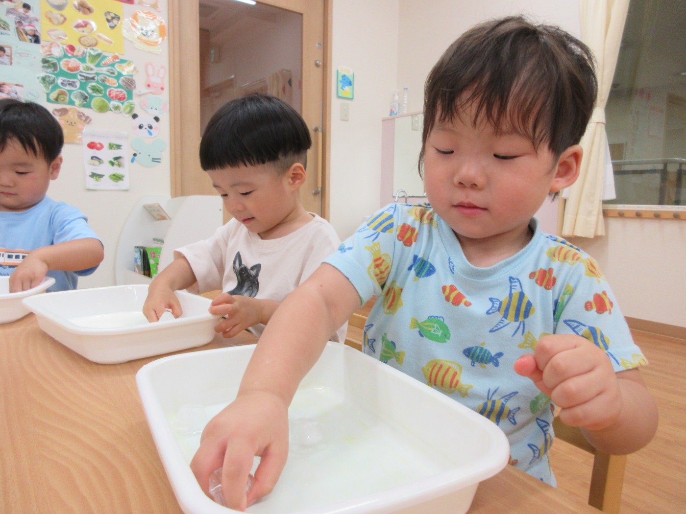 ぎゅ~っと握っては「つめたい!」頬にあてては「気持ち~」と感触を存分に楽しみました。