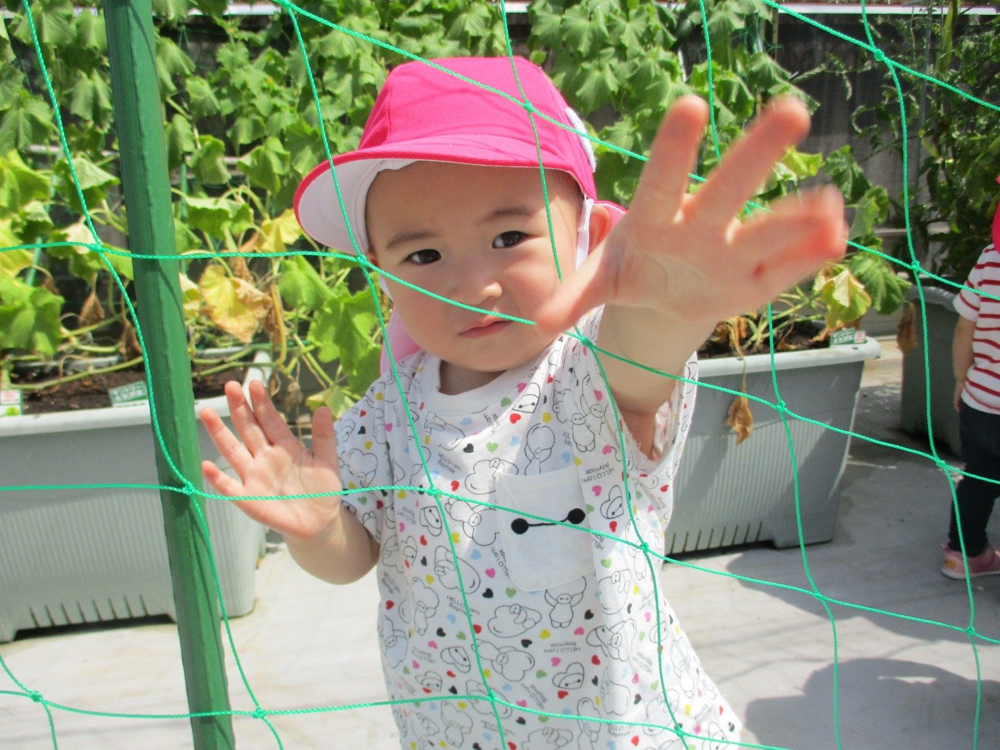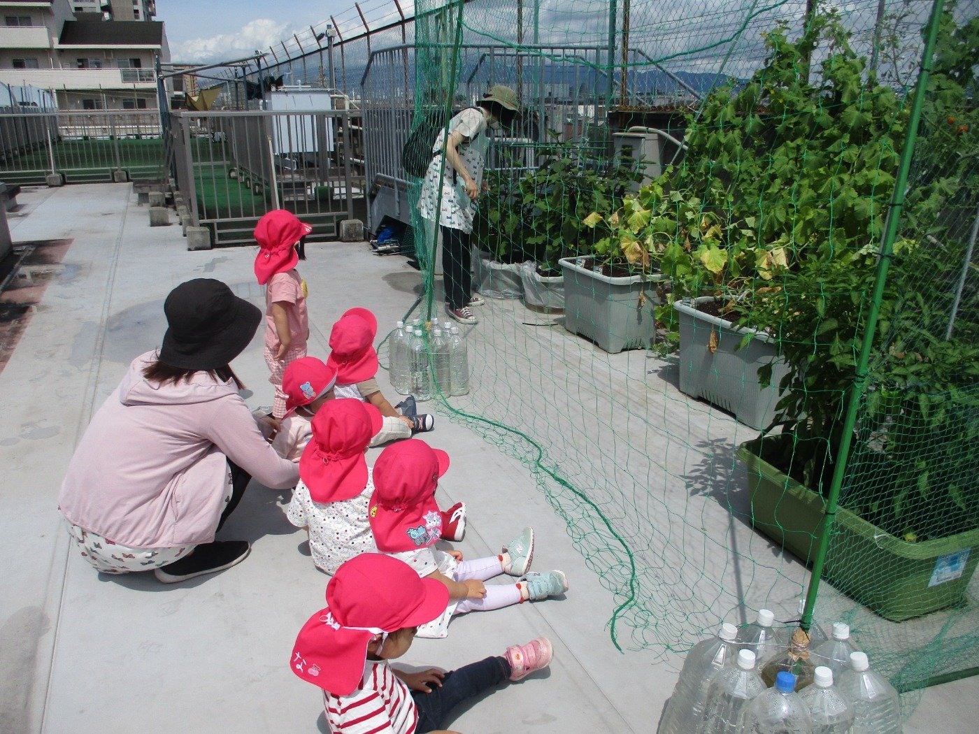 うさぎ組さんは、今週食育デーの予定をたてているので夏野菜の収穫に出かけましたよ。