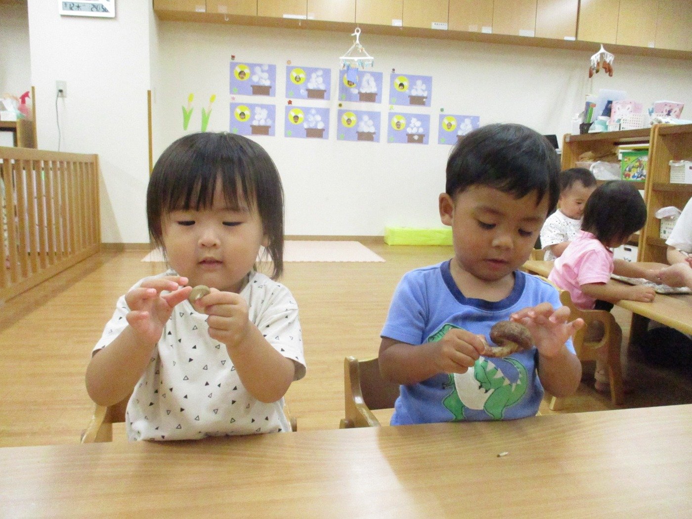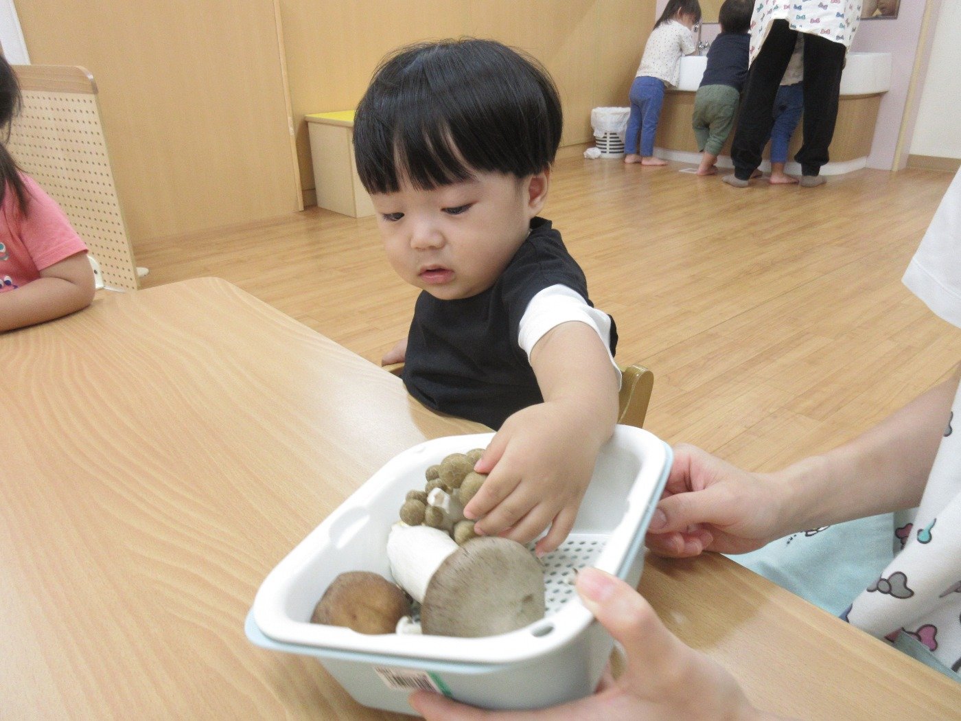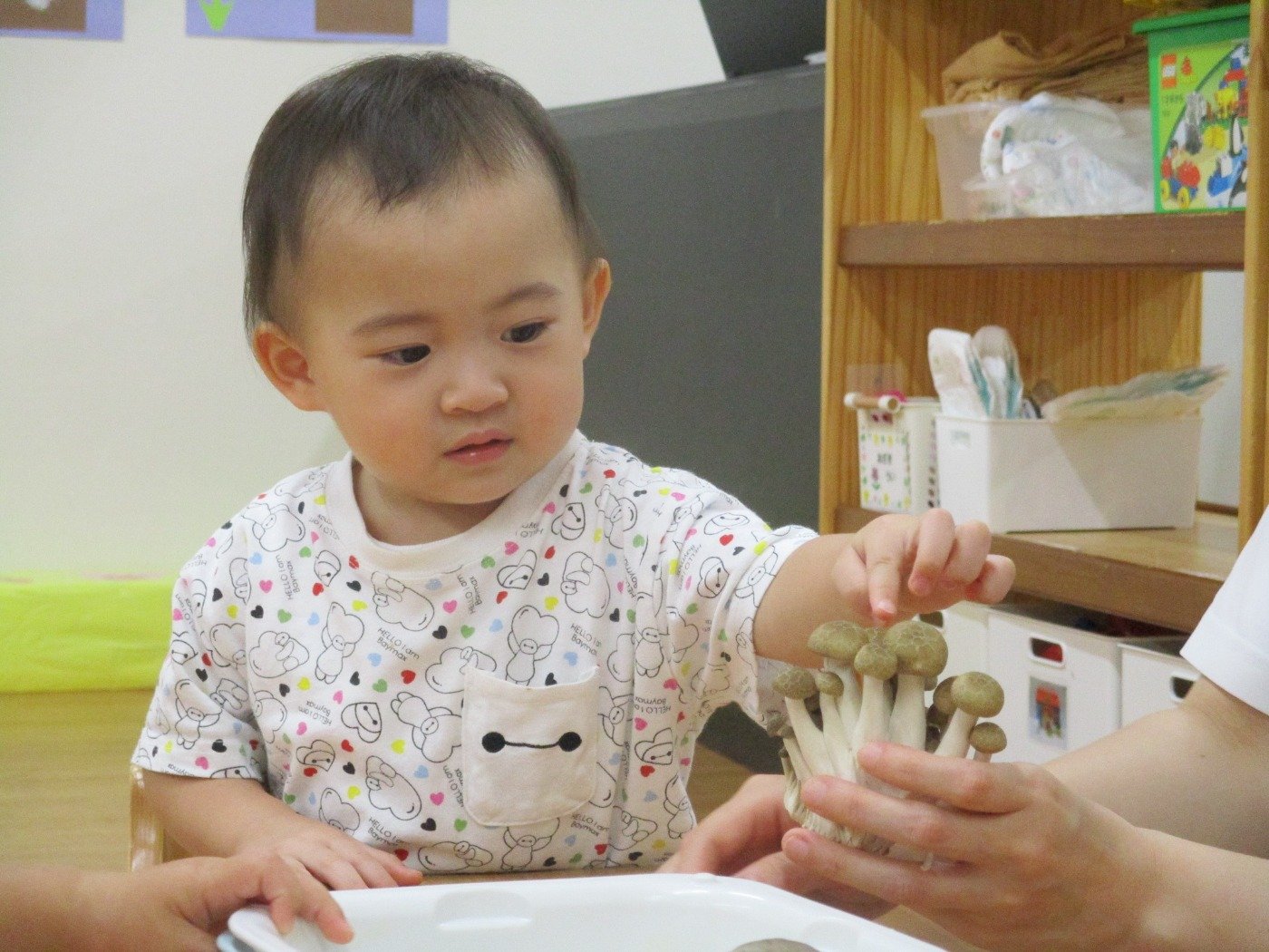 保育者が何も言わなくても、しめじの房分けはじめる姿もみられましたよ😊
