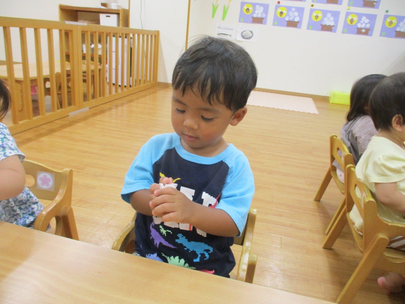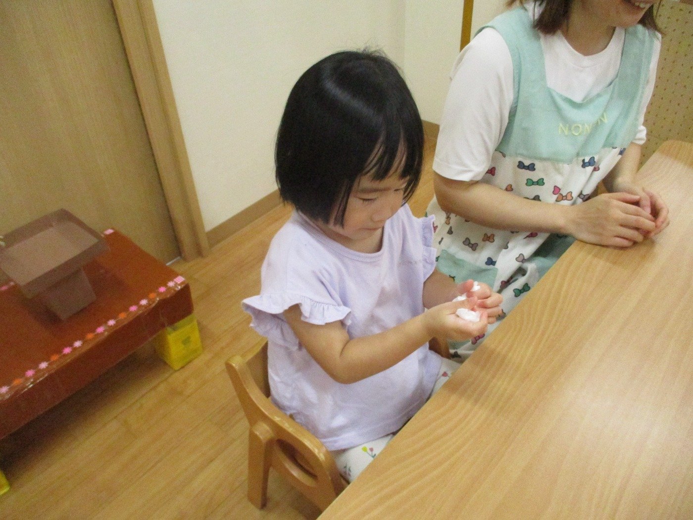 うさぎ組さん、みんなでお月見団子を作りましたよ。