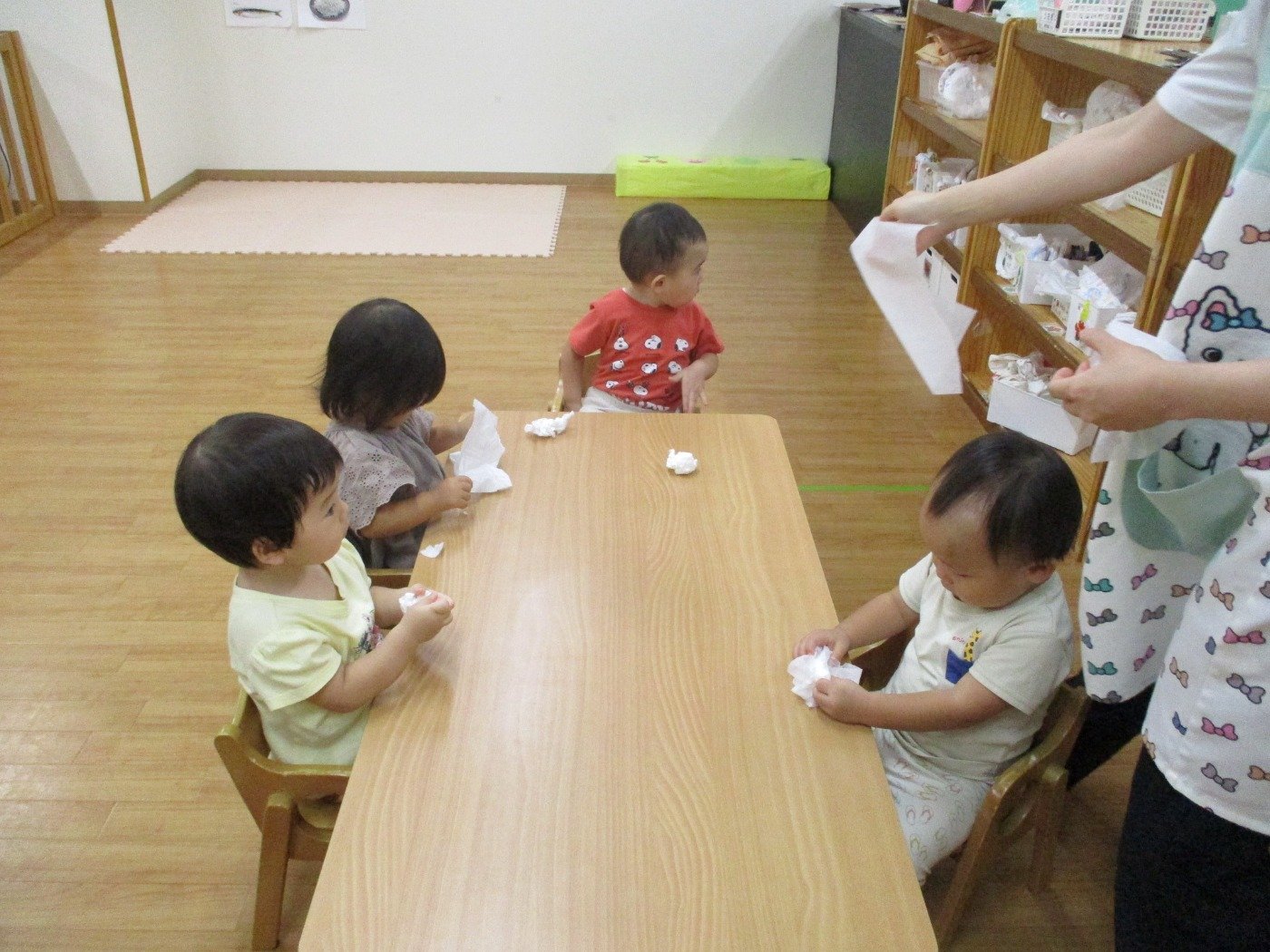 ふわふわのペーパーを、「おいしくな~れ」なんて言いながらくるくるぎゅっぎゅっといろんなお味のお団子ができました。