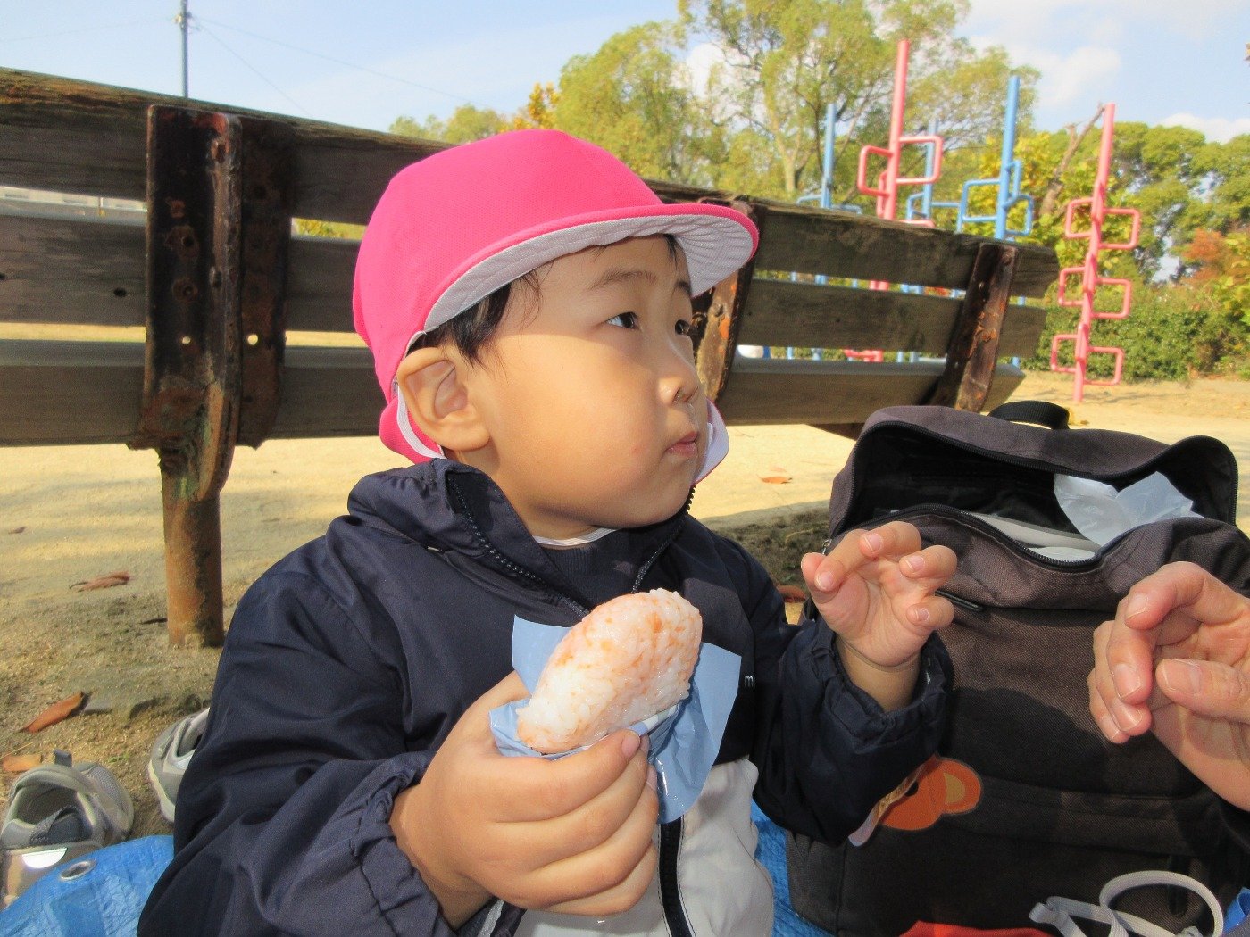 楽しみにしていたお弁当タイム!大きなお口でおにぎりや、おかずを頬張る姿がなんとも可愛いこと😊