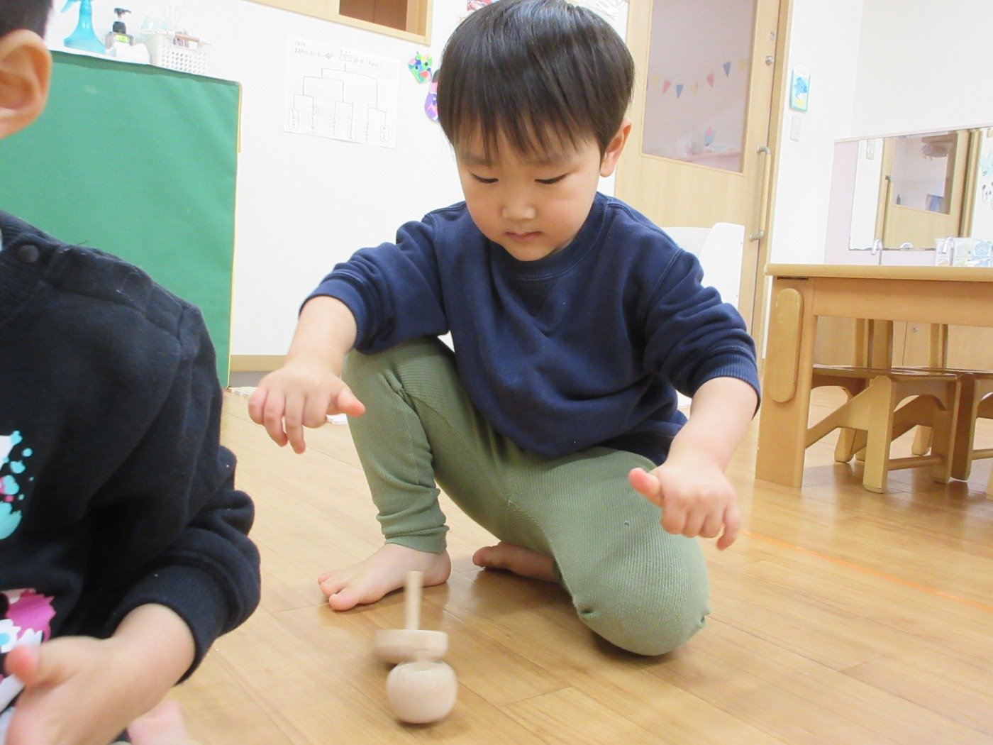 くま組さんは、コマ回し大会をしたり、かるたとりをしました。
