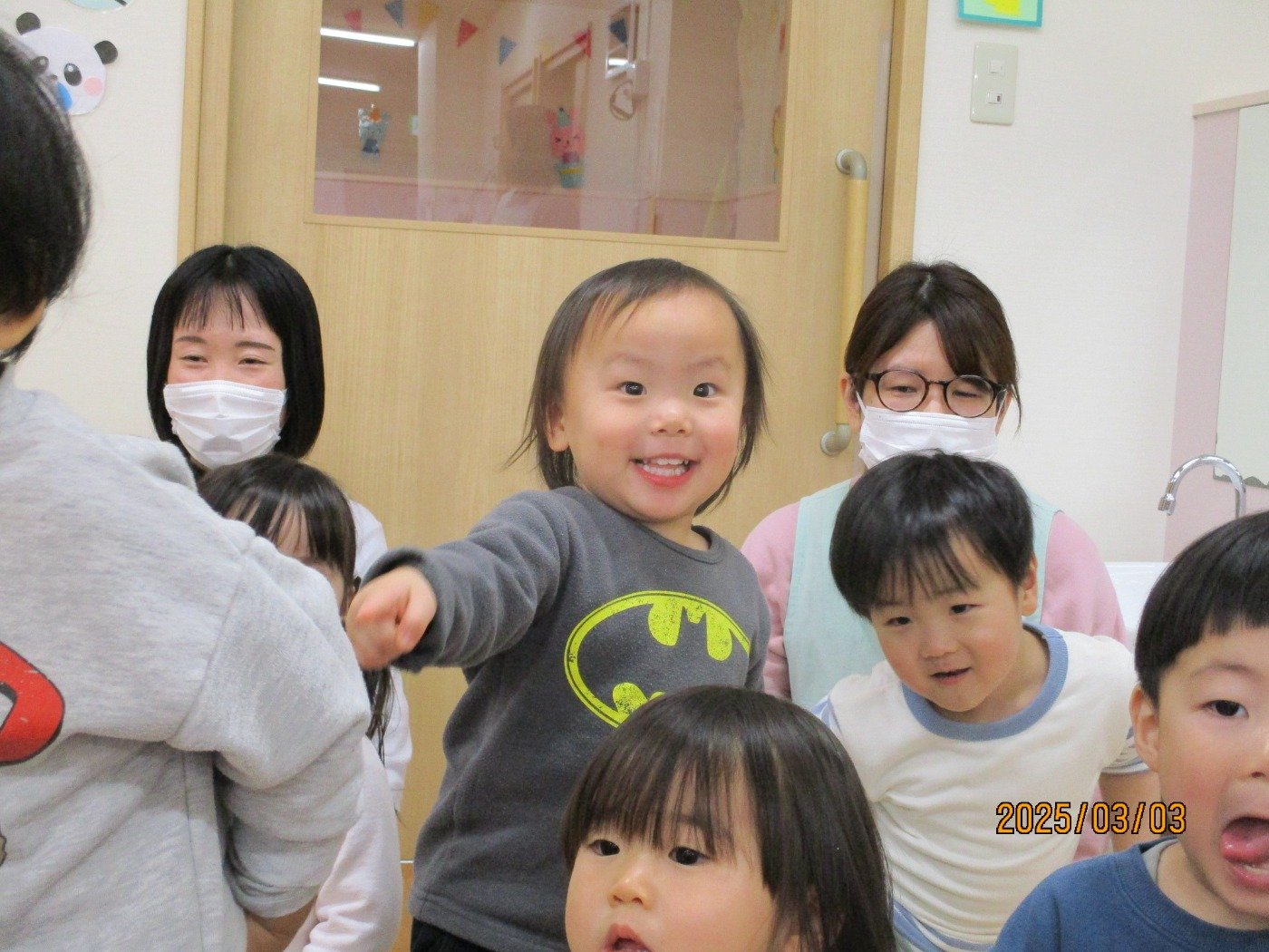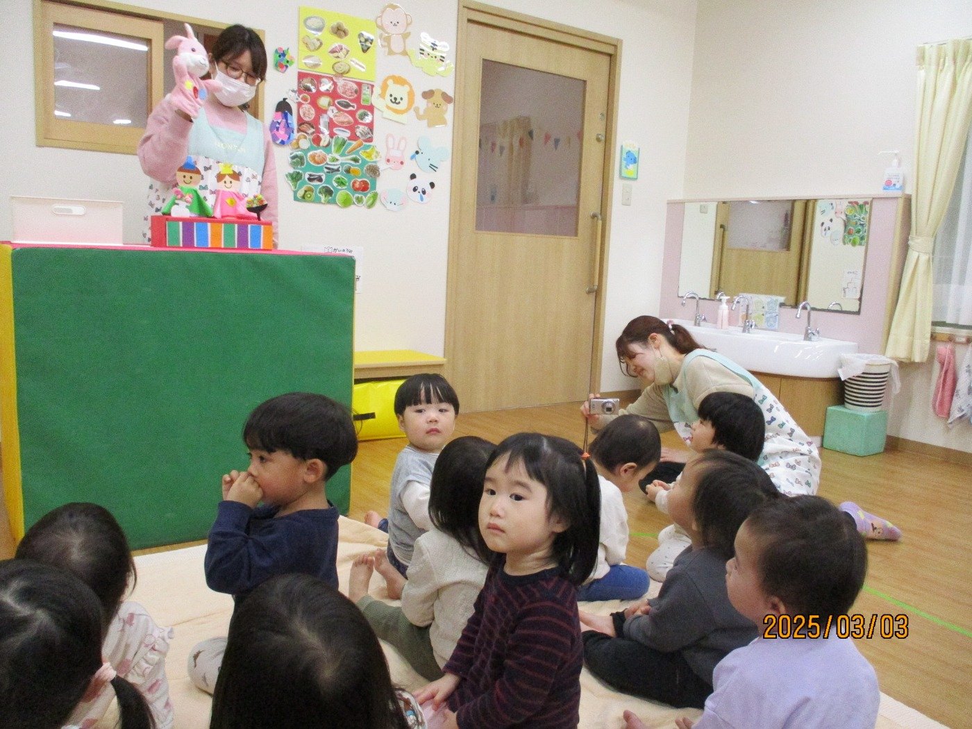 うれしいひなまつりの歌や、ひなまつりにちなんだ絵本をみたり、ひなまつり制作をしたり、ひなまつり会を楽しみにしていた子どもたち。
