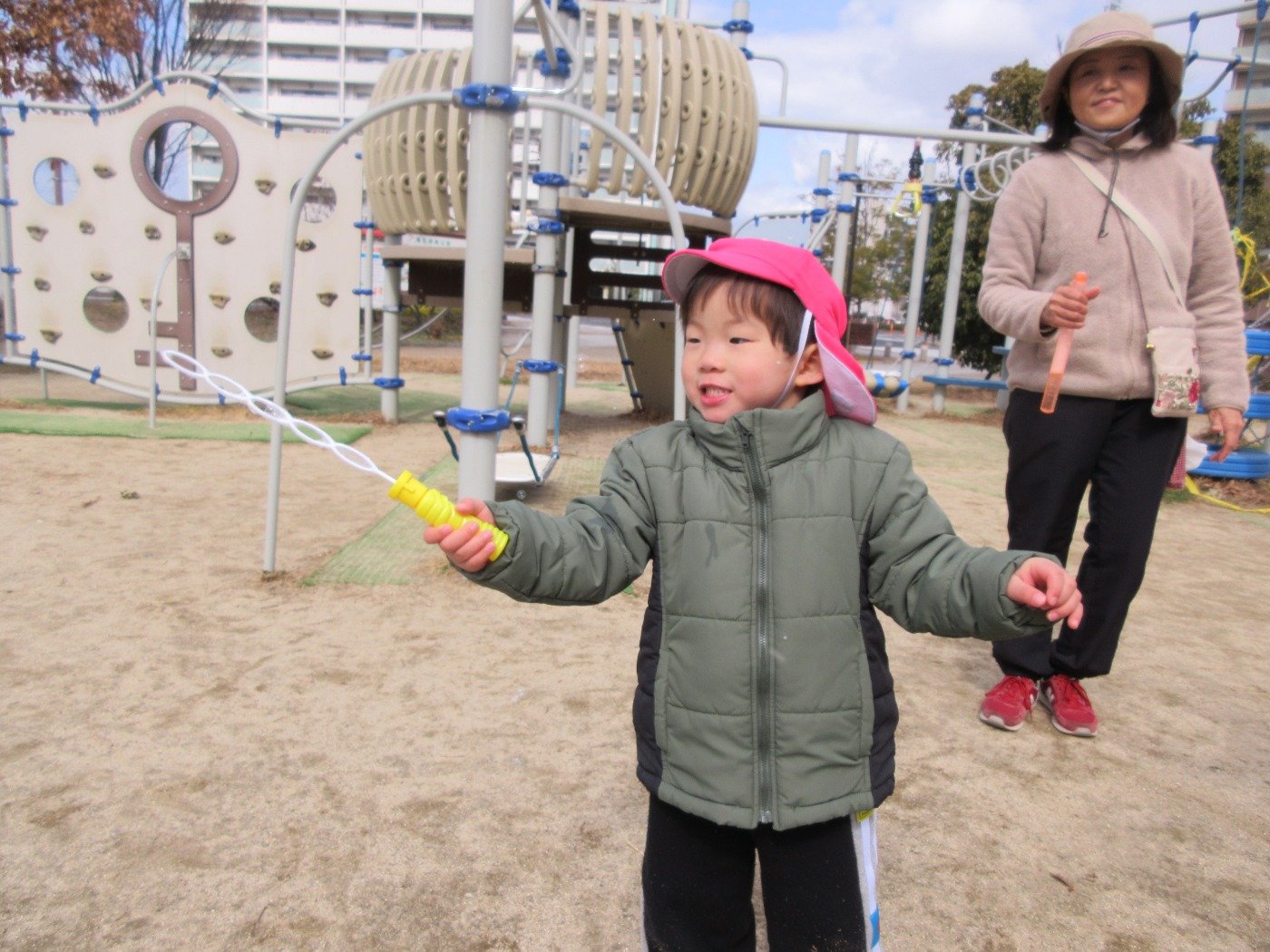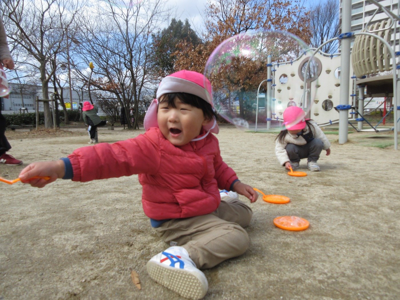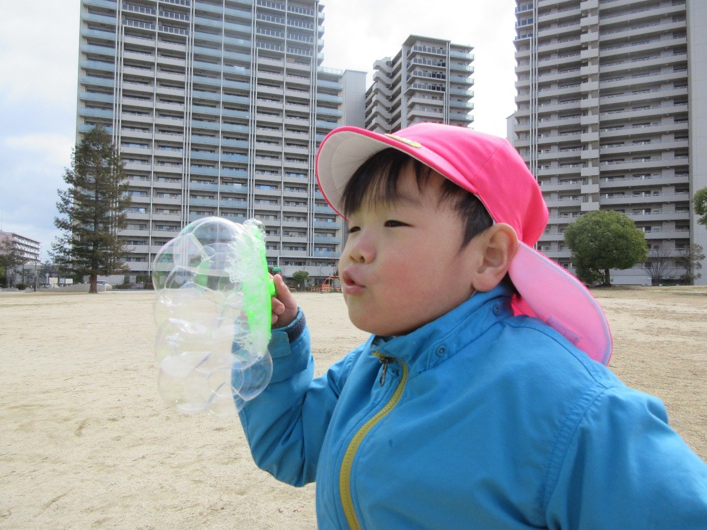 緑緑公園では、みんなでシャボン玉を飛ばして遊びました。