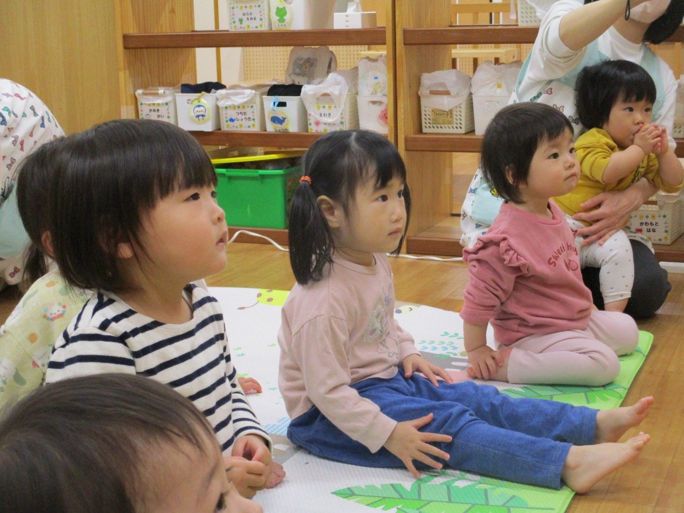 みんなで歌も歌ったよ。時折保育者の顔を見たり、保育者と手を繋いで歌ったりといつものくま組さんらしくて、その姿もほのぼのとしてて素敵でしたよ😊
