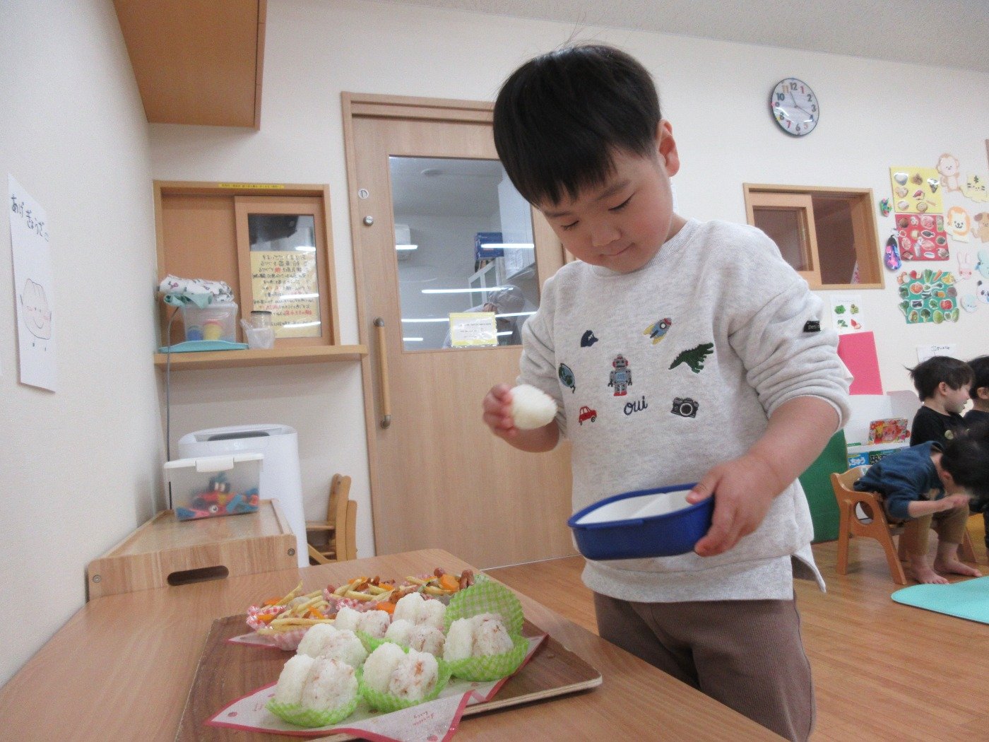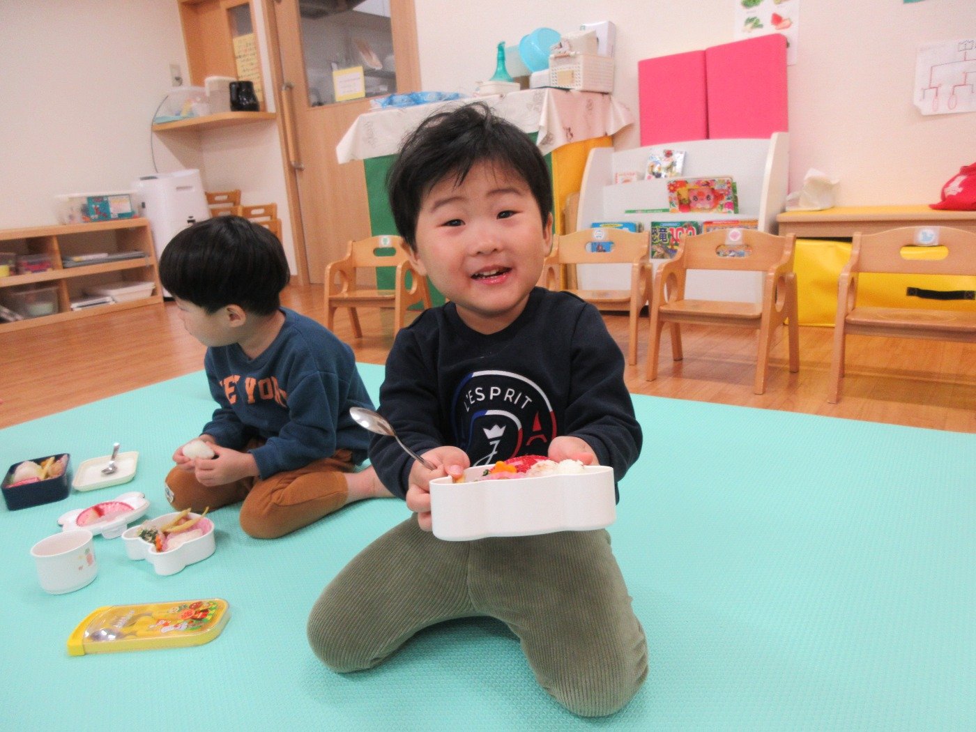 いつもと違う雰囲気でみんなで食べる経験は初めてでしたが、子ども達が楽しんでいる姿を見て、また今日のような楽しい時間をどんどん作りたいと思いました。