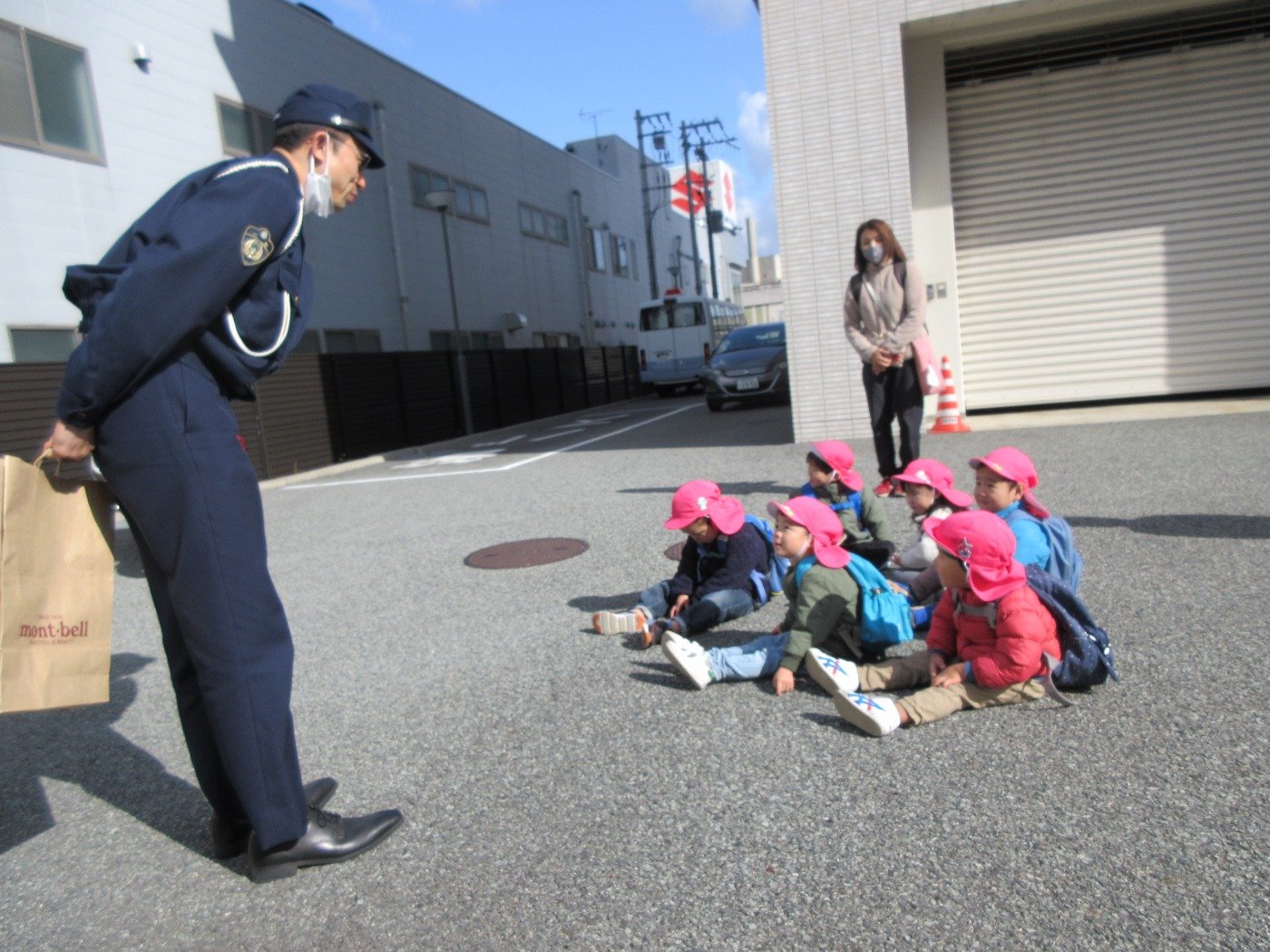 まずは、お巡りさんに交通ルールのお話しを聞いたよ。
