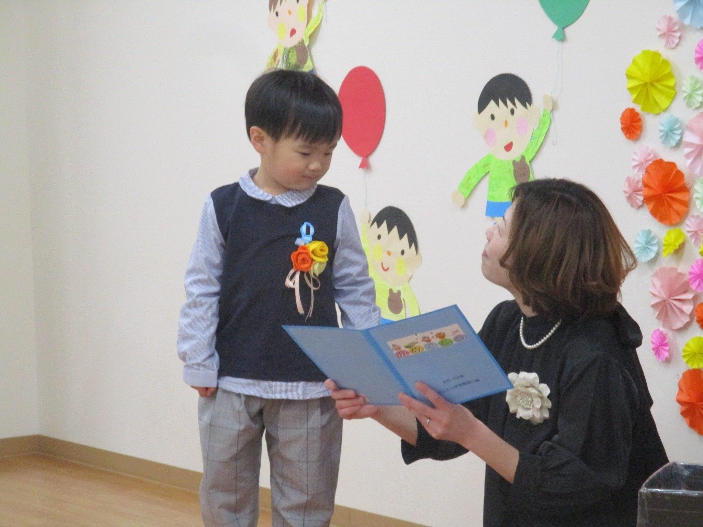 卒園証書の際お名前を呼ばれると、照れながらも証書台にしっかりと立ち、証書を受け取る姿がとてもかっこよくてそばで見ていて胸があつくなりました。