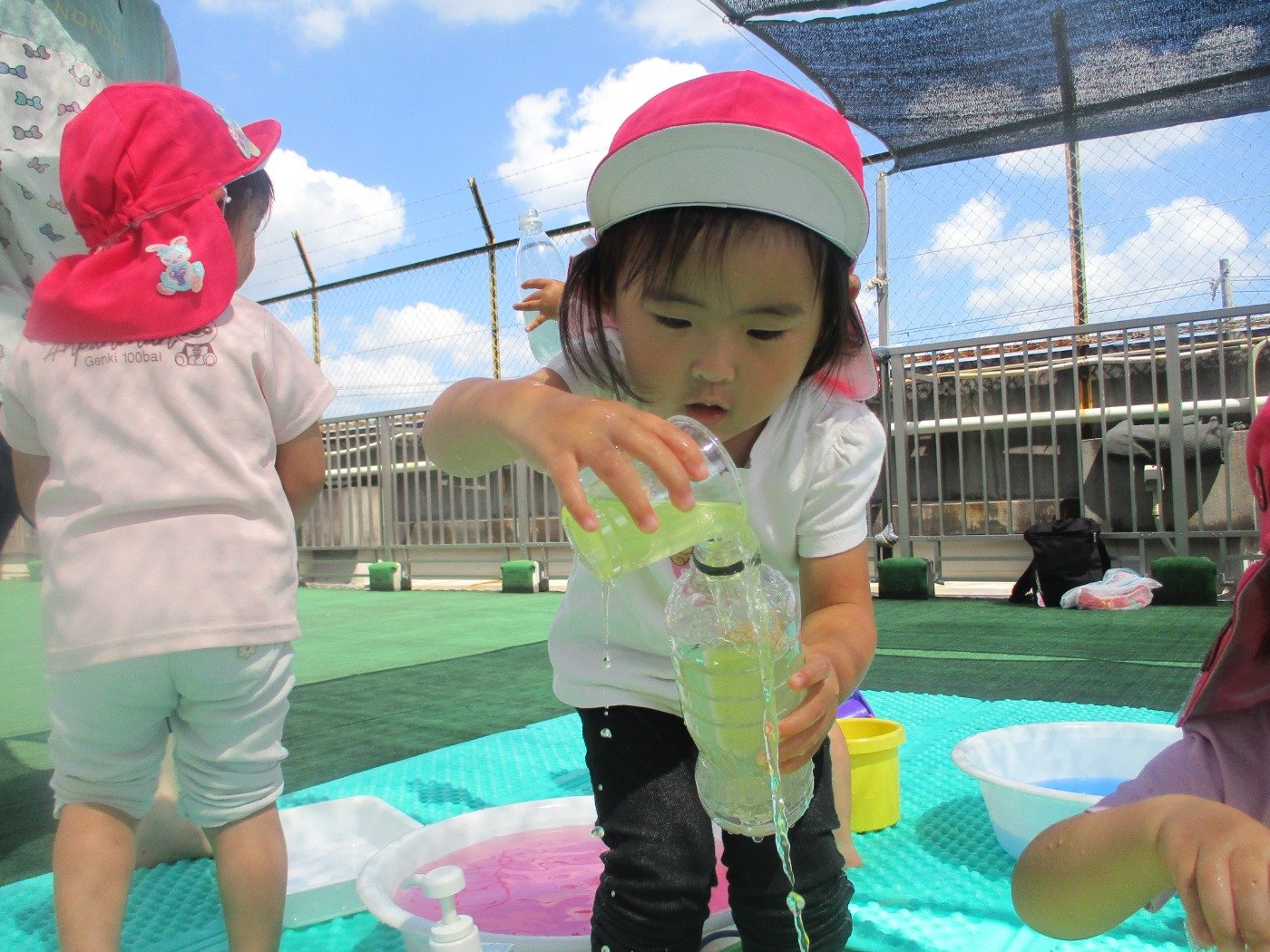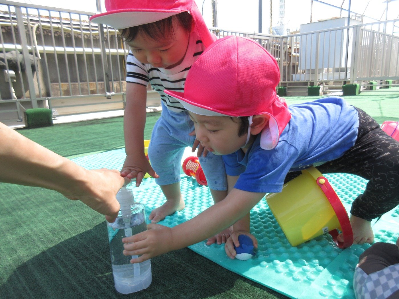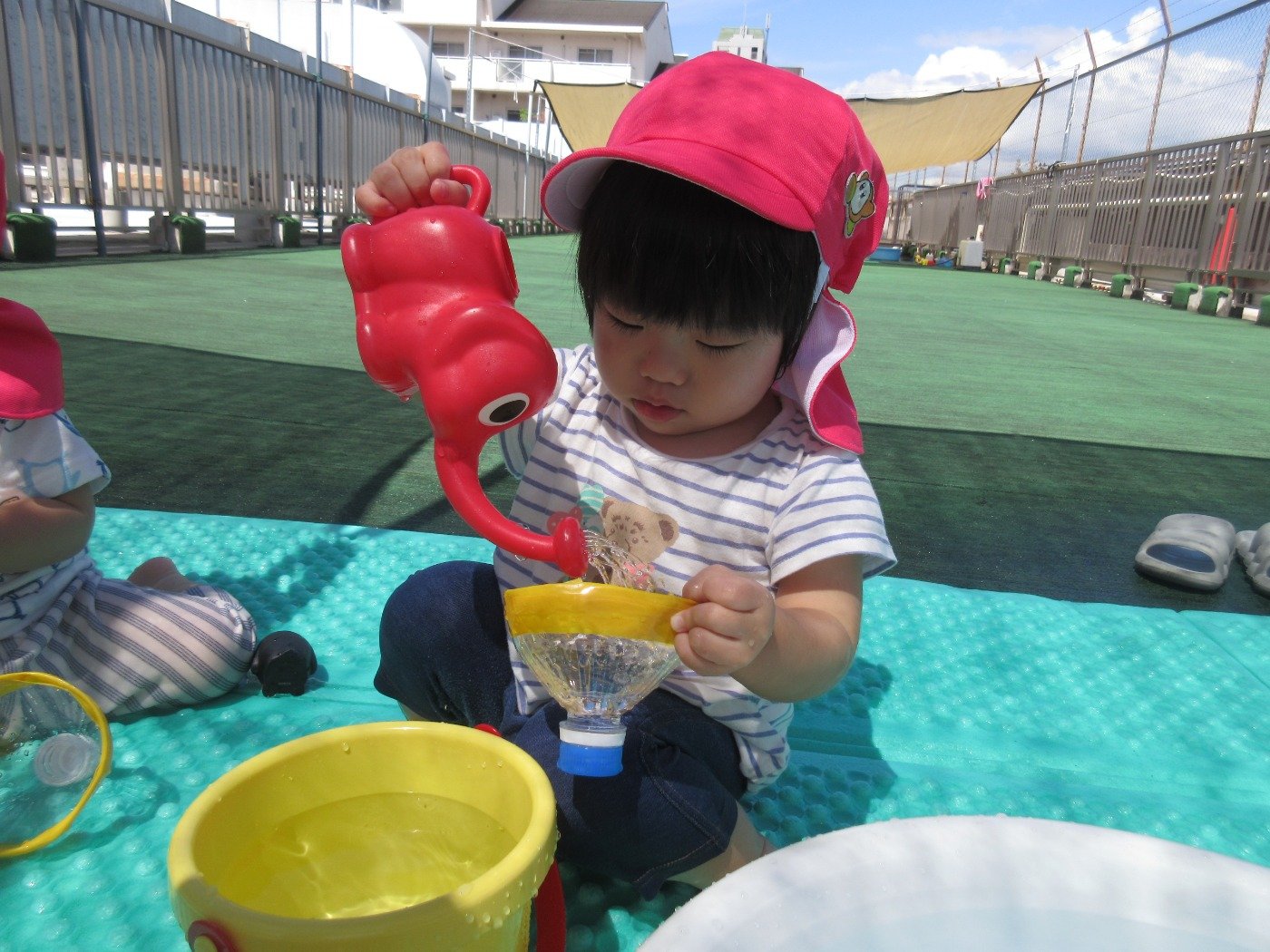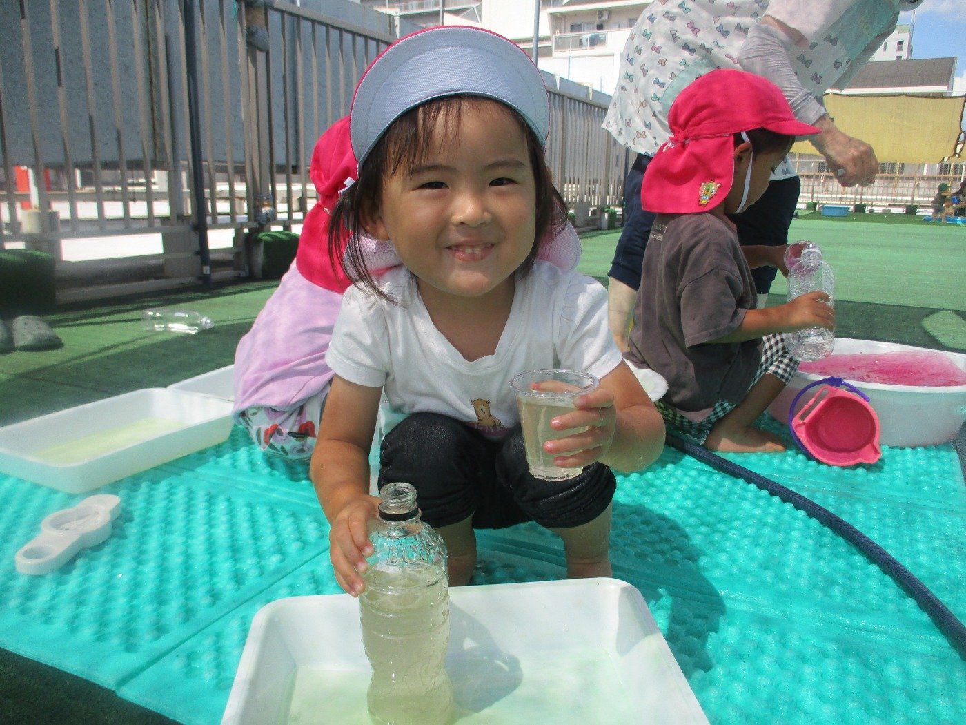 おひさまのお友だちは、様々な水遊びの展開を楽しんでいます。