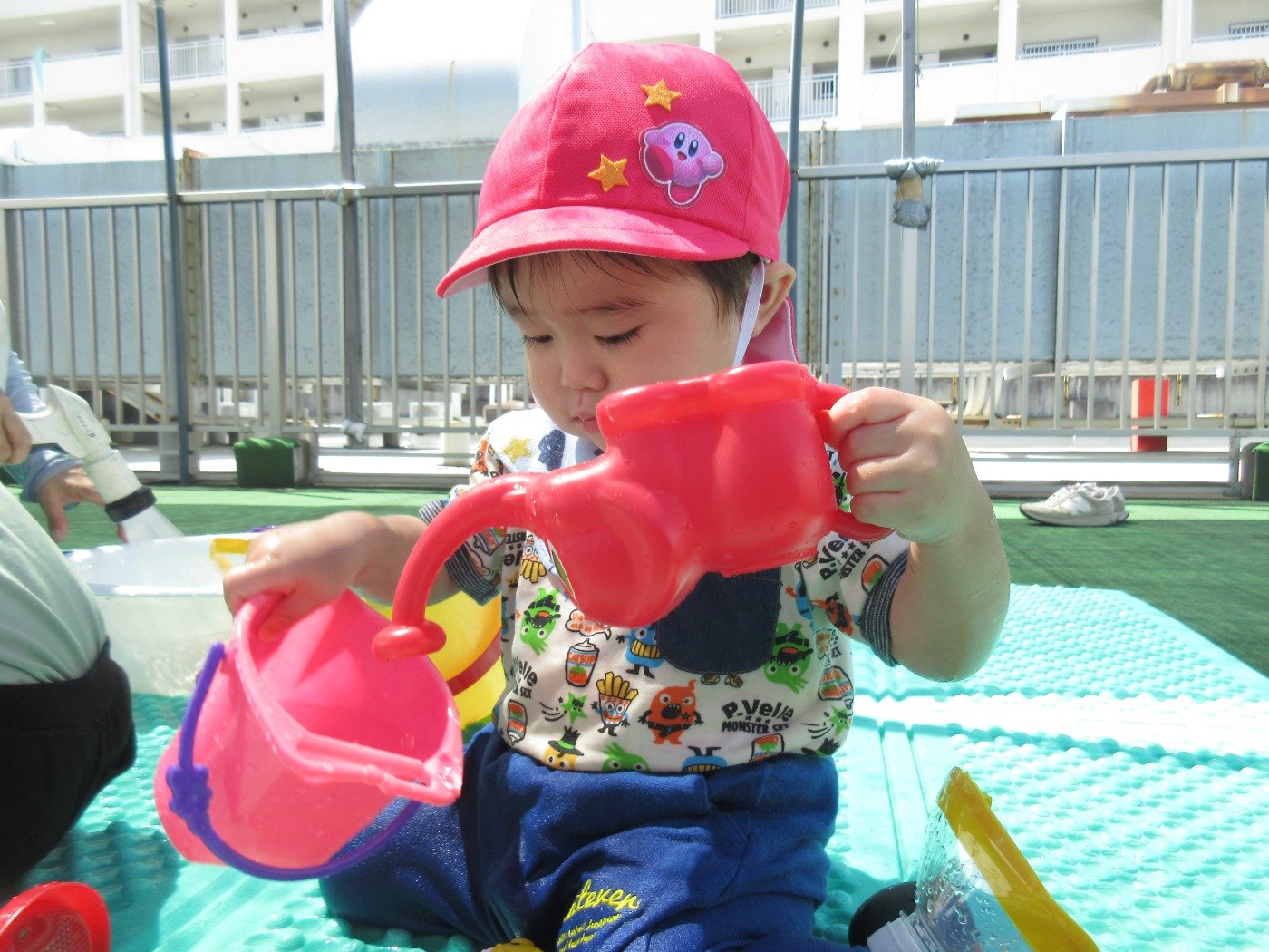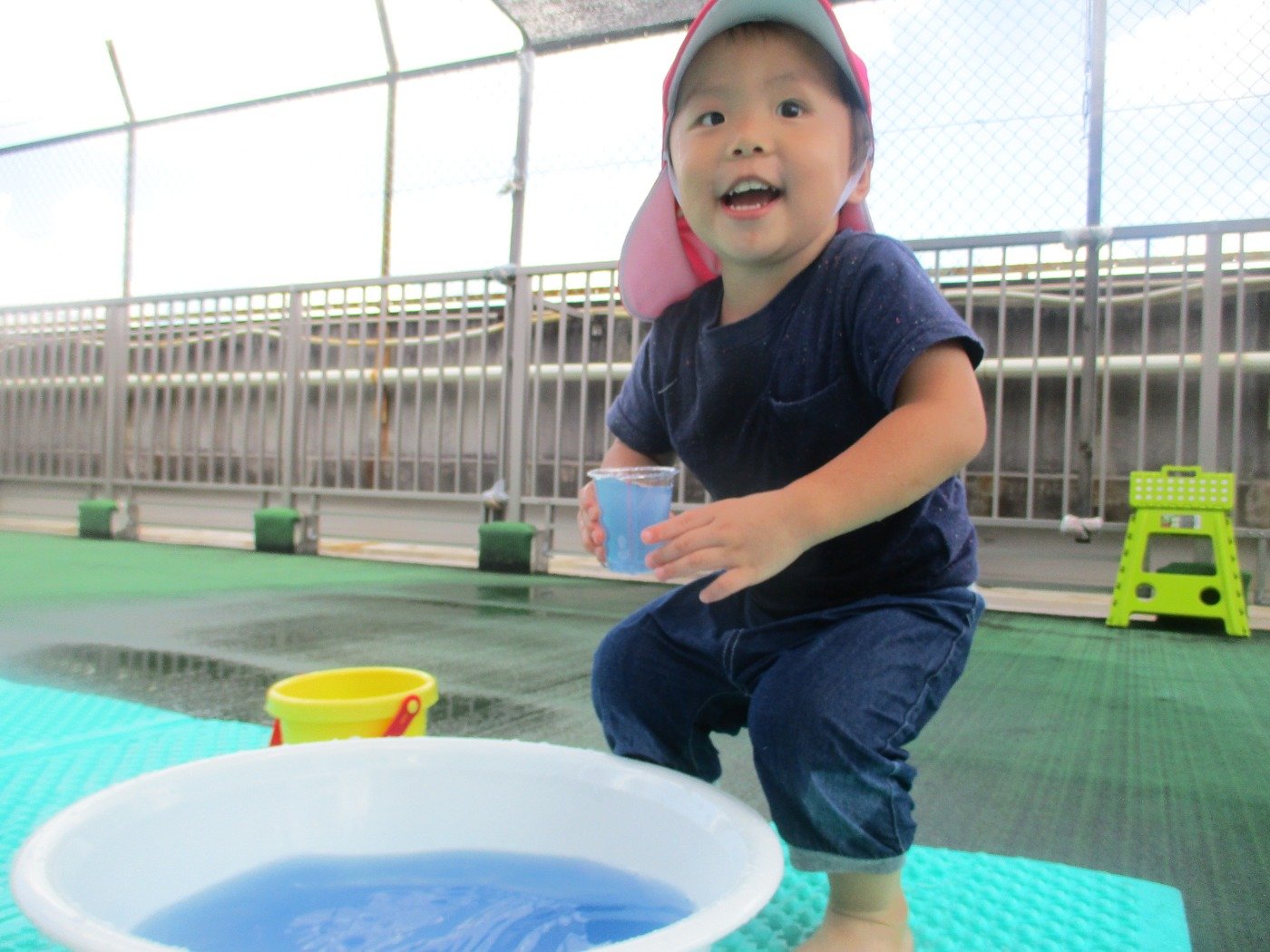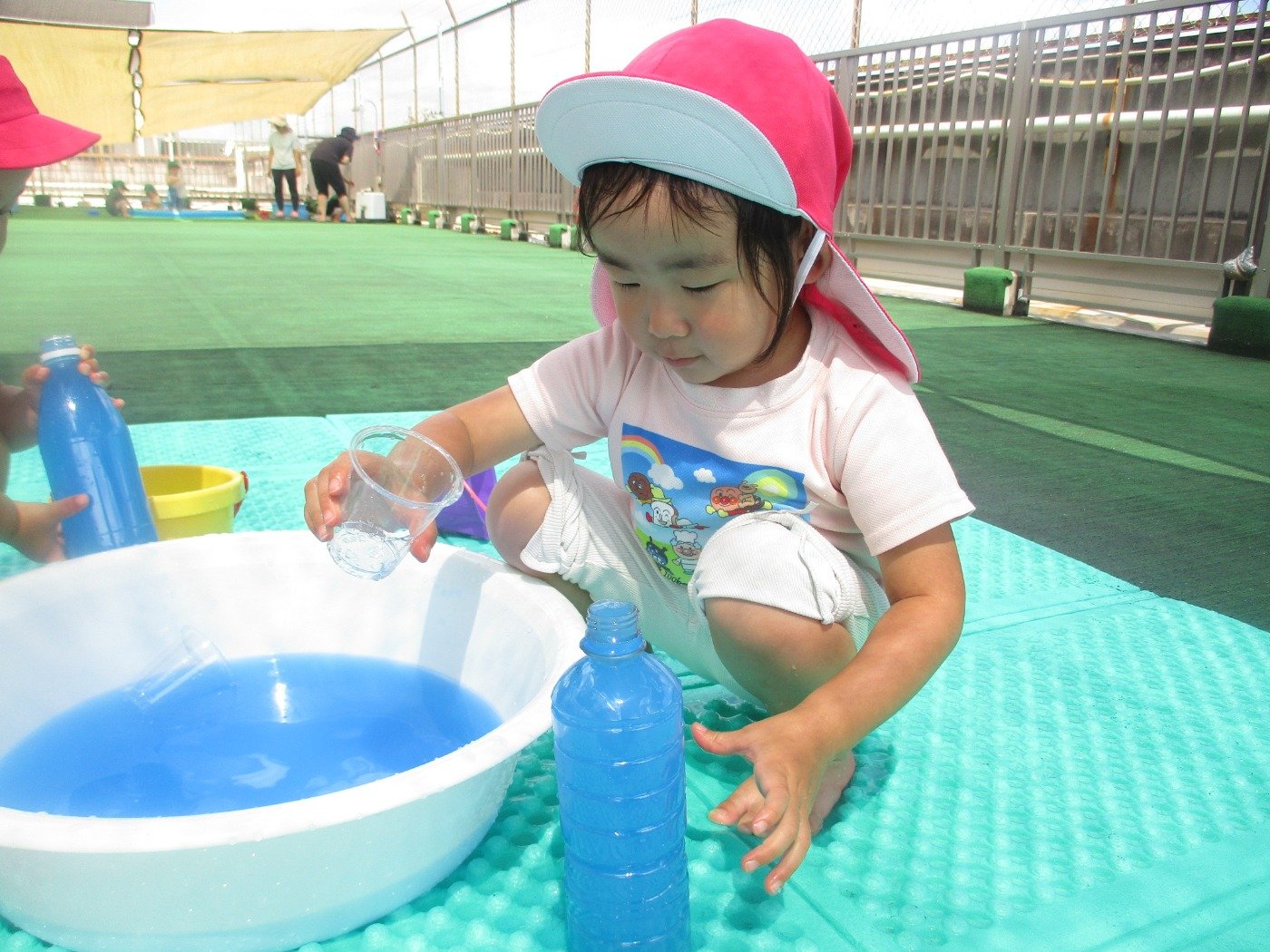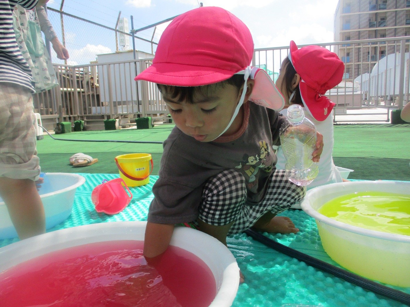 おひさまのお友だちは、様々な水遊びの展開を楽しんでいます。