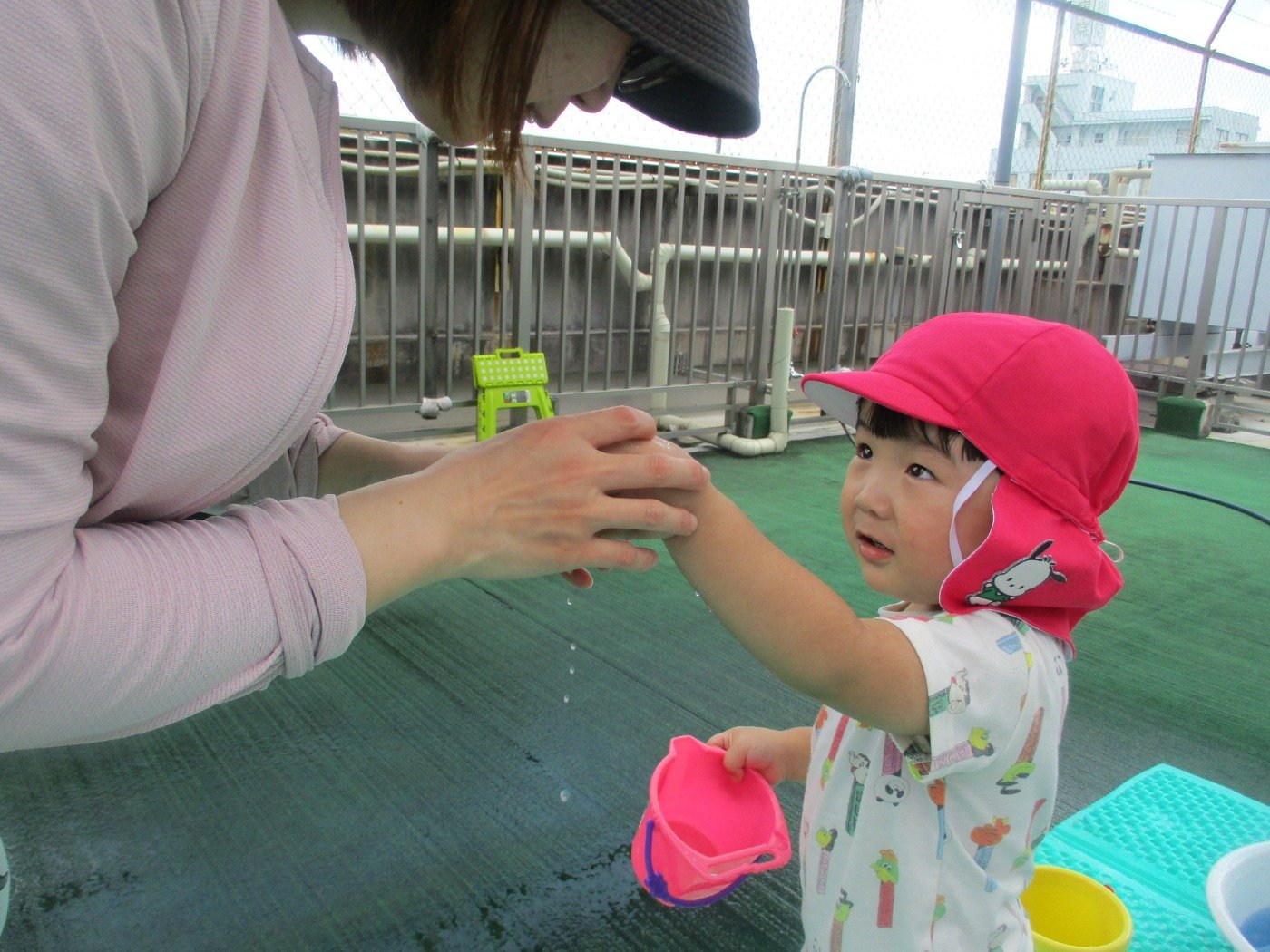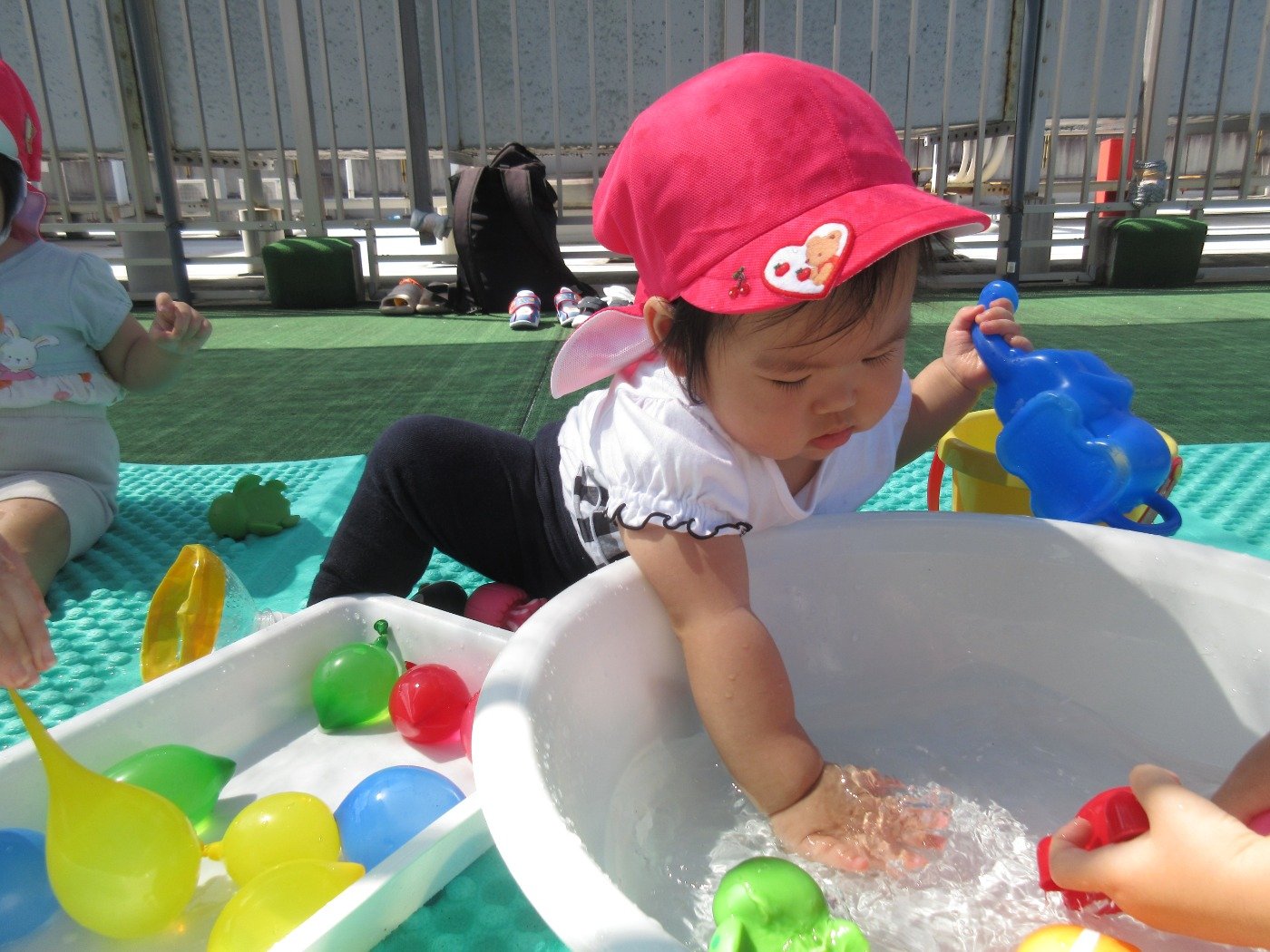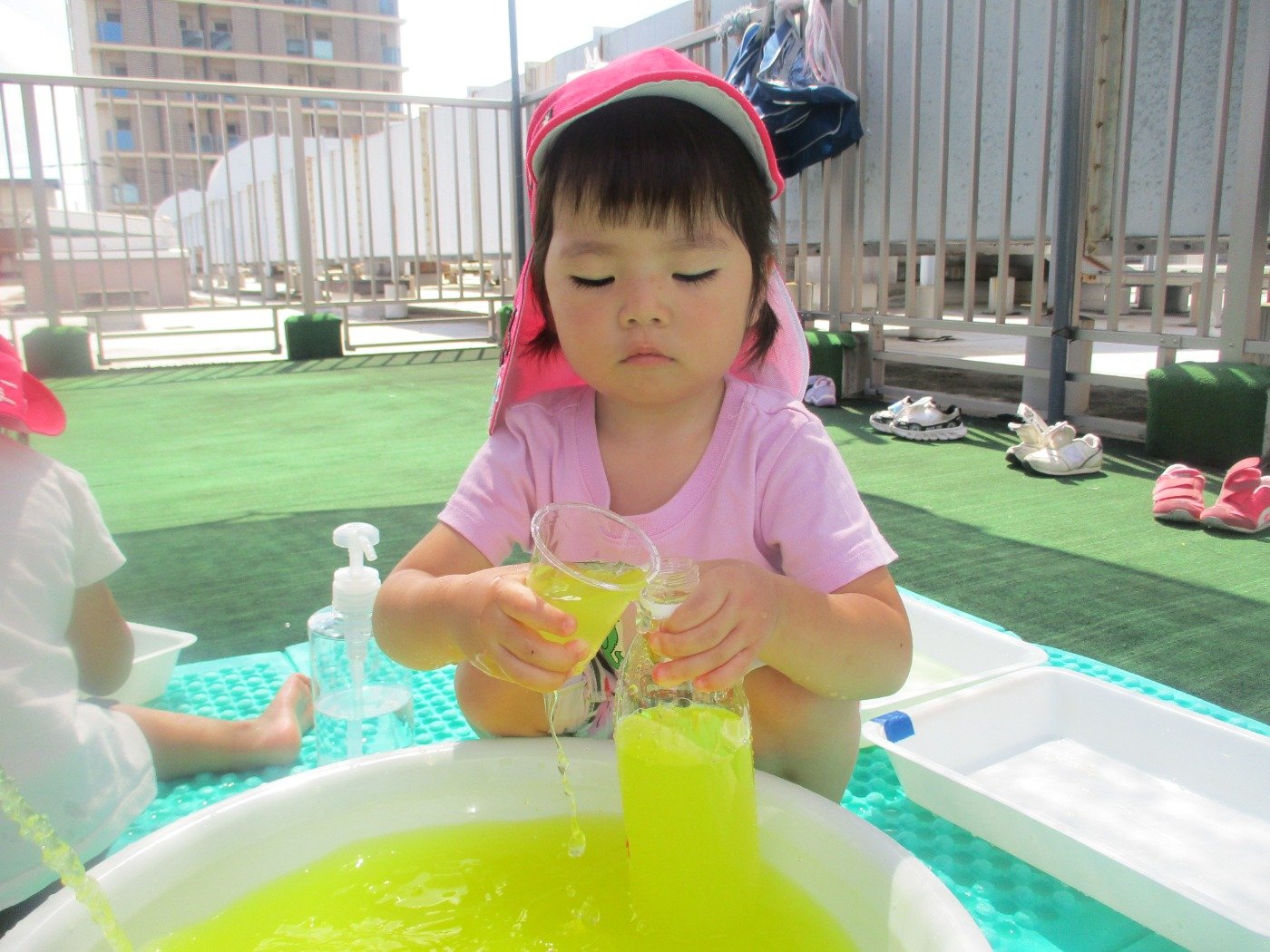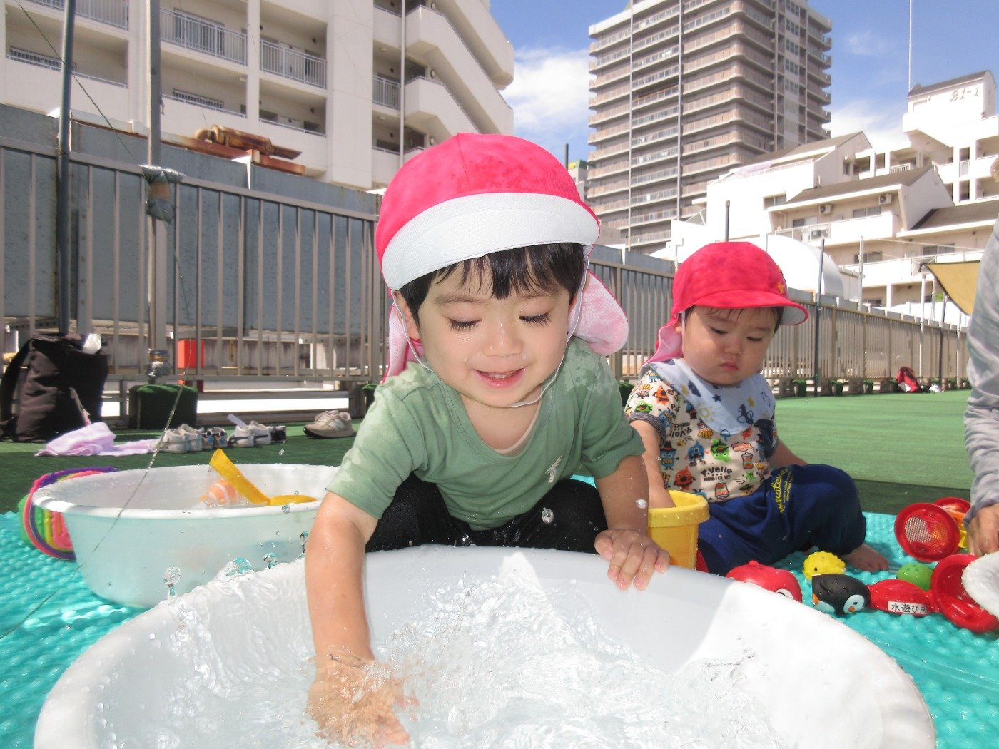 おひさまのお友だちは、様々な水遊びの展開を楽しんでいます。