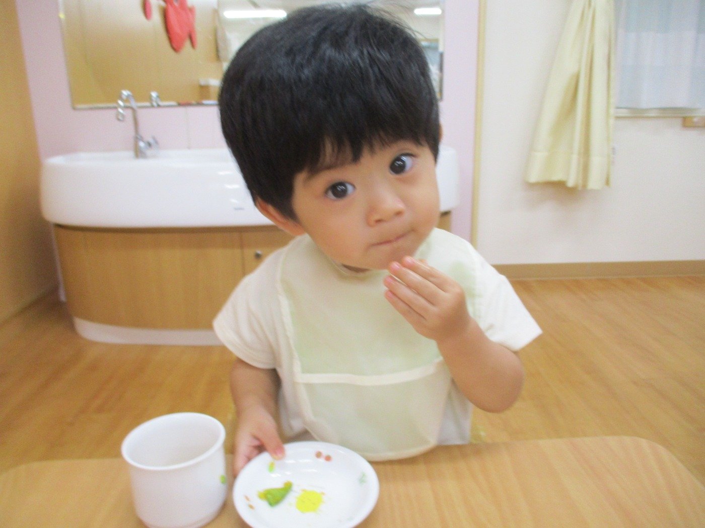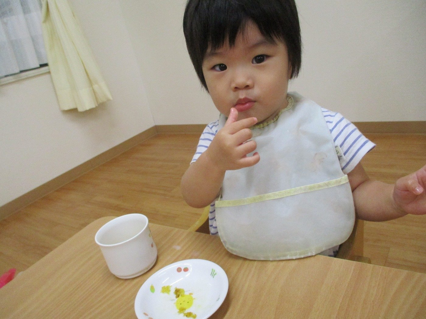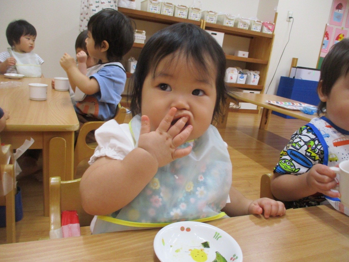 「おいしい!」とお代わりをする子もいれば、やっぱり苦手とする子もいます。 どんな食材・メニューでも苦手な物があるのはみな一緒。でもね、苦手だからとすぐにあきらめるのではなく、食べなくてもまずは一人ひとりに配膳、見る・眺めるからだけでもOK。触る・匂いを嗅ぐ・少しだけ舐めてみる(無理のないように)から少しずつ苦手な食材・料理に見慣れることって大切なこと。周りの大人やお友だちが美味しそうに食べていると、食べてみようかな・どんな味がするのかな・・・なんて子どもなりに感じてくれるのではないかな。苦手とする食材を食べられるようになるタイミングはみんな違うと思いますが、いろんな食材を見たり・触れたり・食べたりする経験を大切にし食の幅が広がるようなそんな食育活動を続けていきたいです。