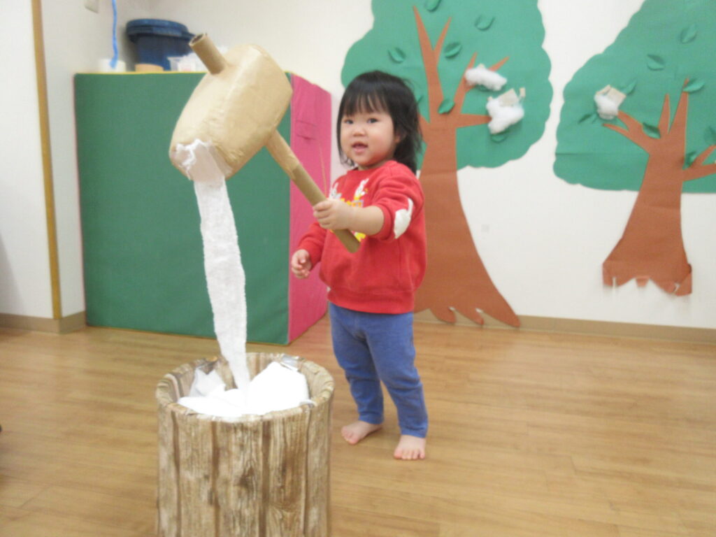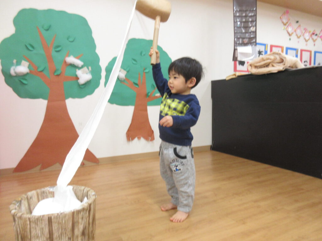 よいしょっ!と杵をもちあげ「ぺったーん」「ぺったーん」