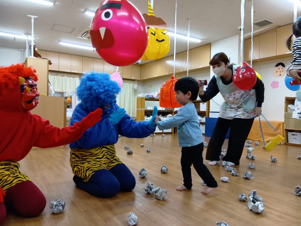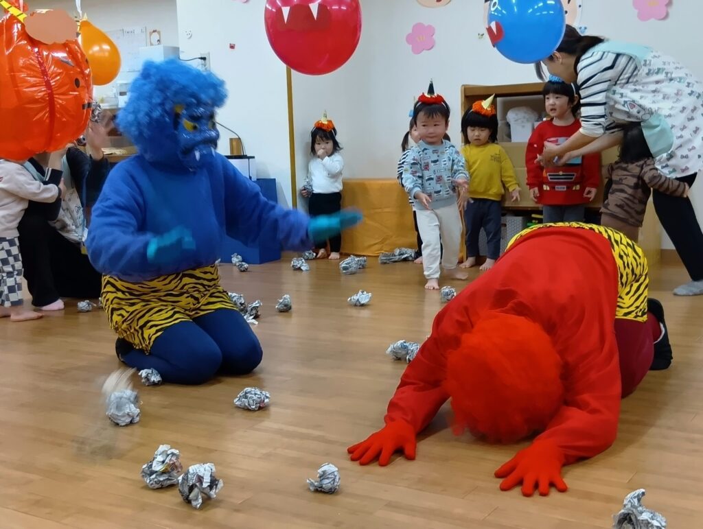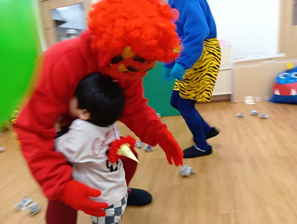 豆まきや鬼退治をとおして、いやいや鬼や泣き虫鬼など、心の中にいる鬼をにみんなで退治できたね。