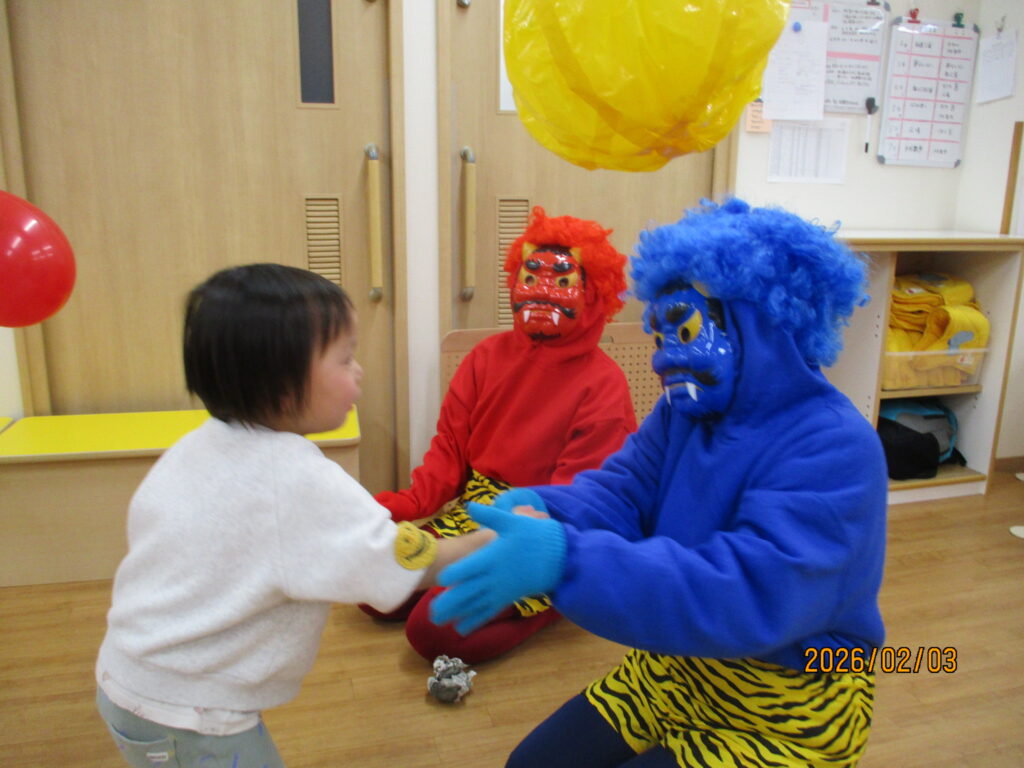オニさんと一緒に「赤鬼と青鬼のタンゴ」を踊ってオニさんとお別れをしました。