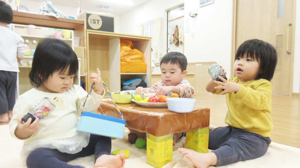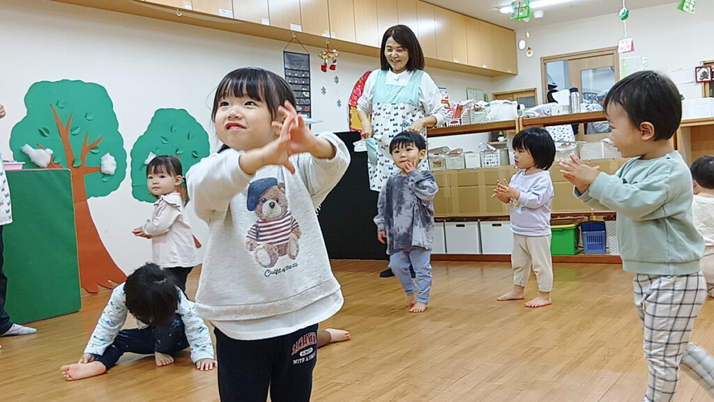 お帰りの会では、リズム遊びやわらべうたをしてお帰りの歌を歌います♪その後は自由に過ごします。