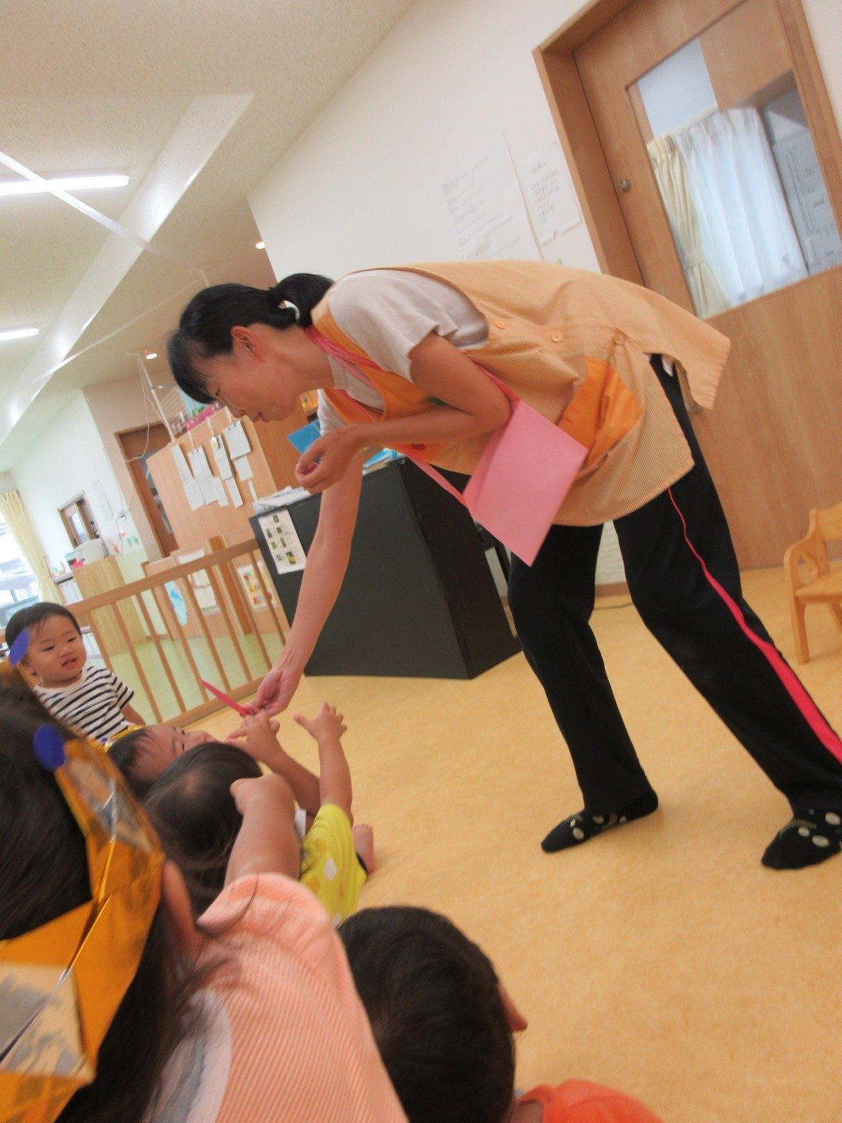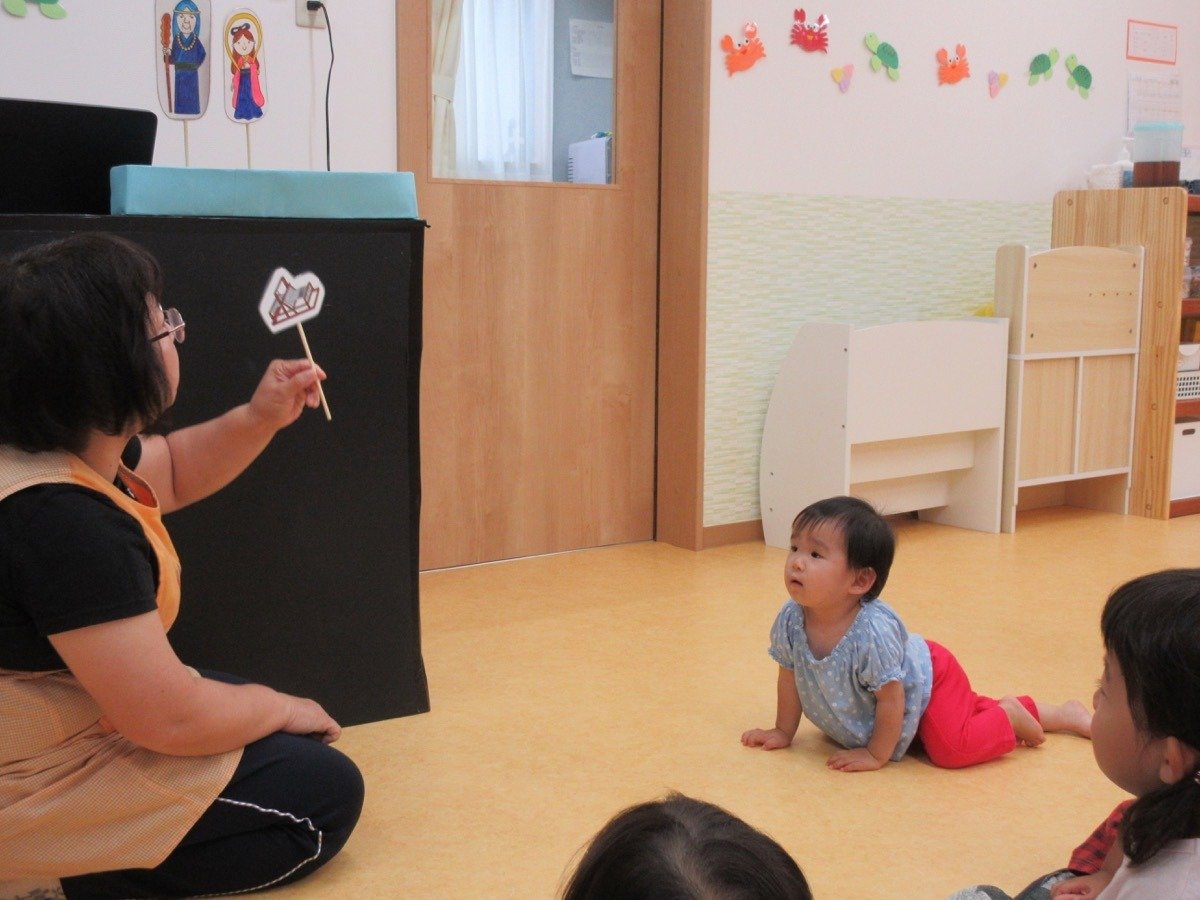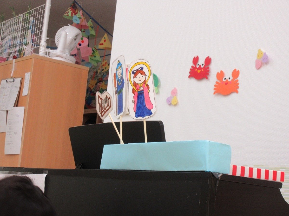 先生が、「昔々ね、織姫様と彦星様がいてね…」とペープサートを使って話しが始まると