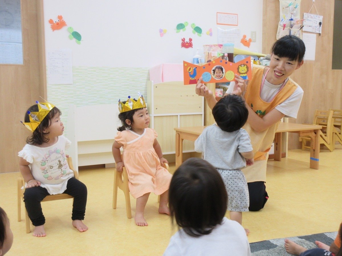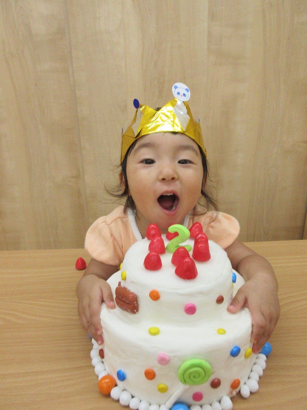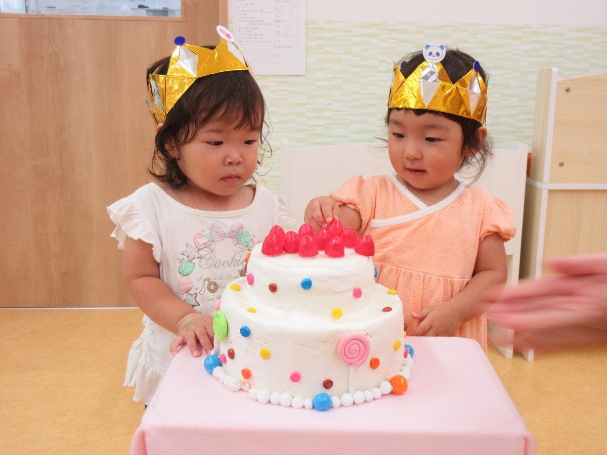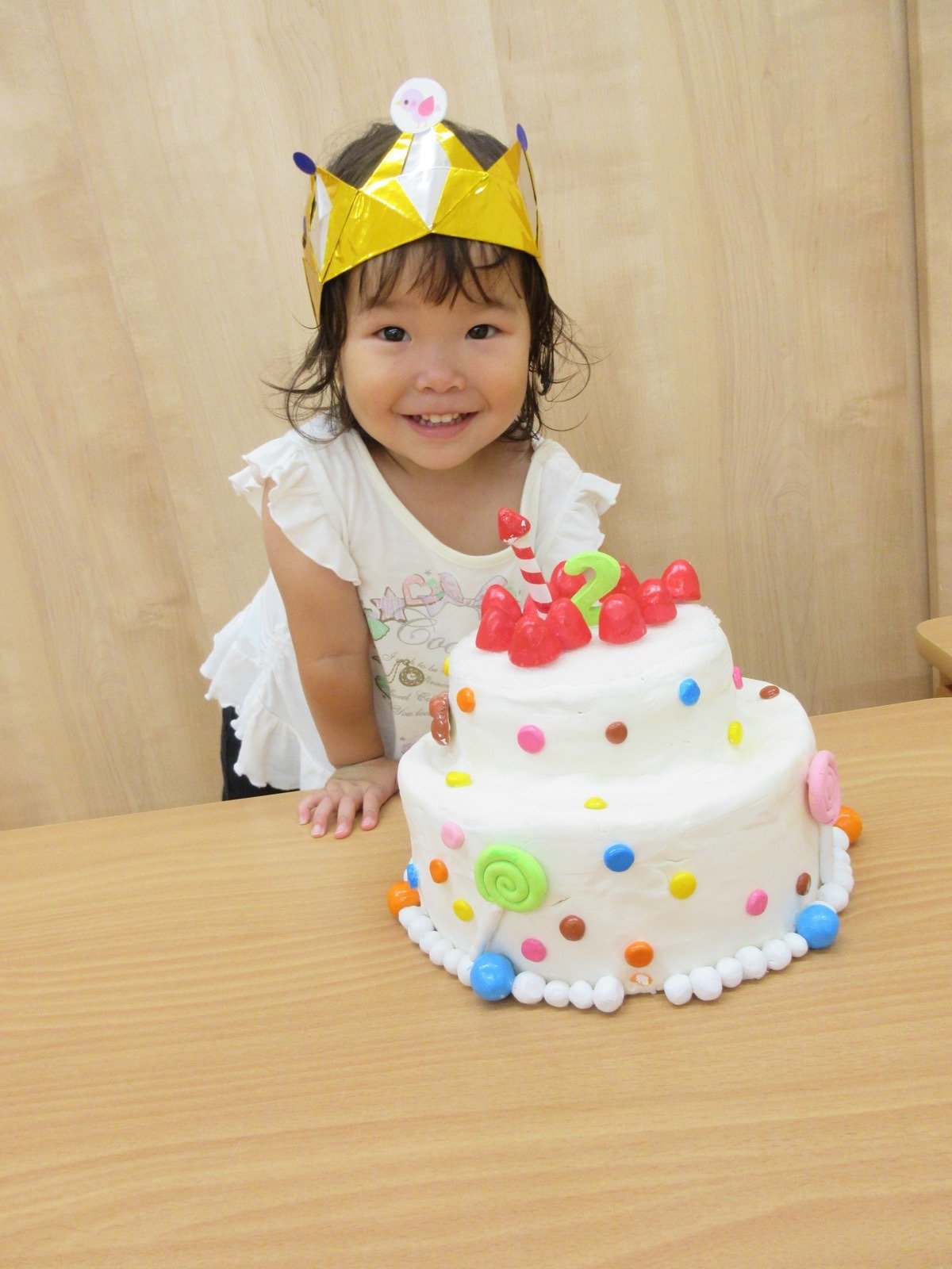 「お誕生日会、楽しみだね!」と言うと、恥ずかしがりやのHちゃんは、にーっと笑ってちょっぴりテレテレ…