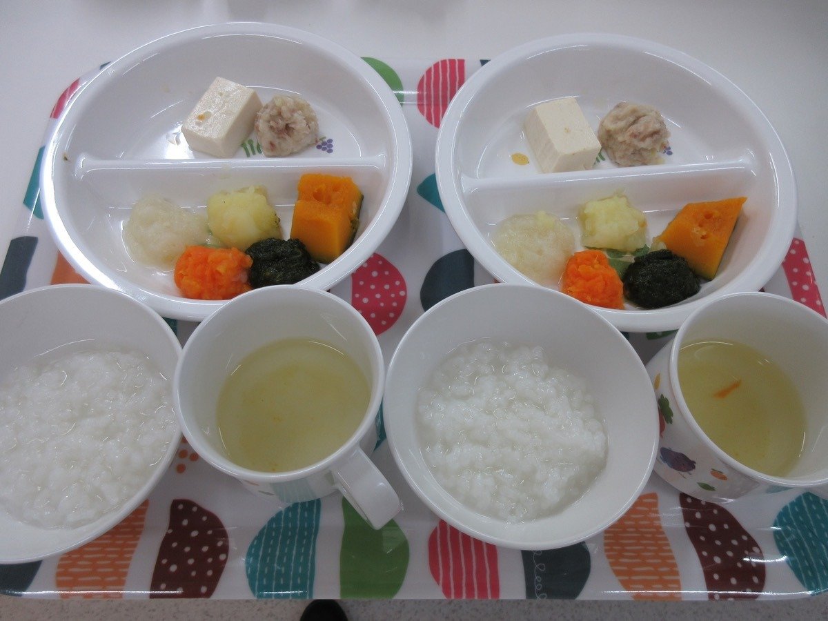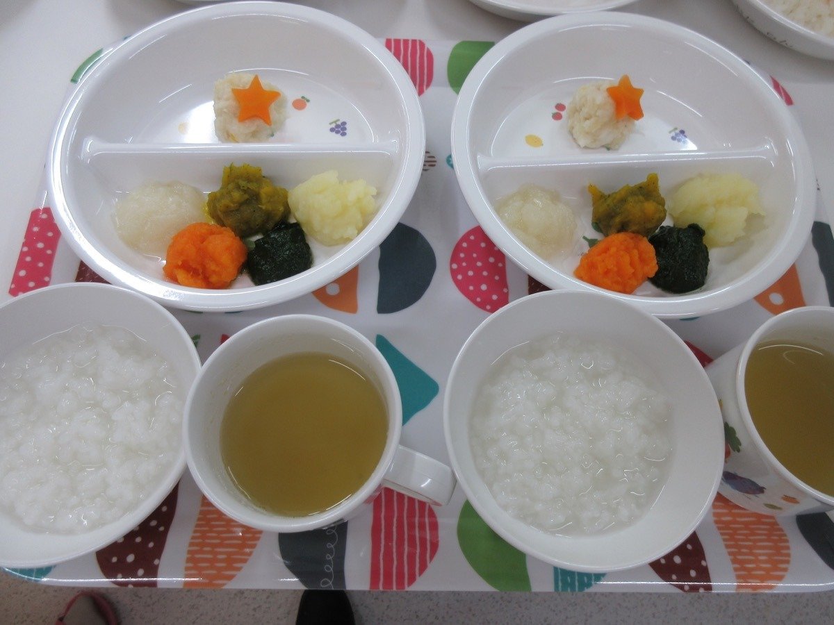 「ひよこぐみさん(0歳児)は、こんな事して作ったんだよ。」