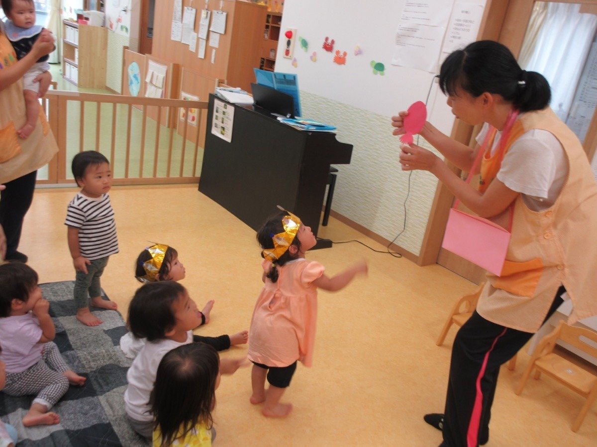 「さぁ、七夕まつりがはじまるよ~」という先生の声に、「なんだ?なんだ?」というように