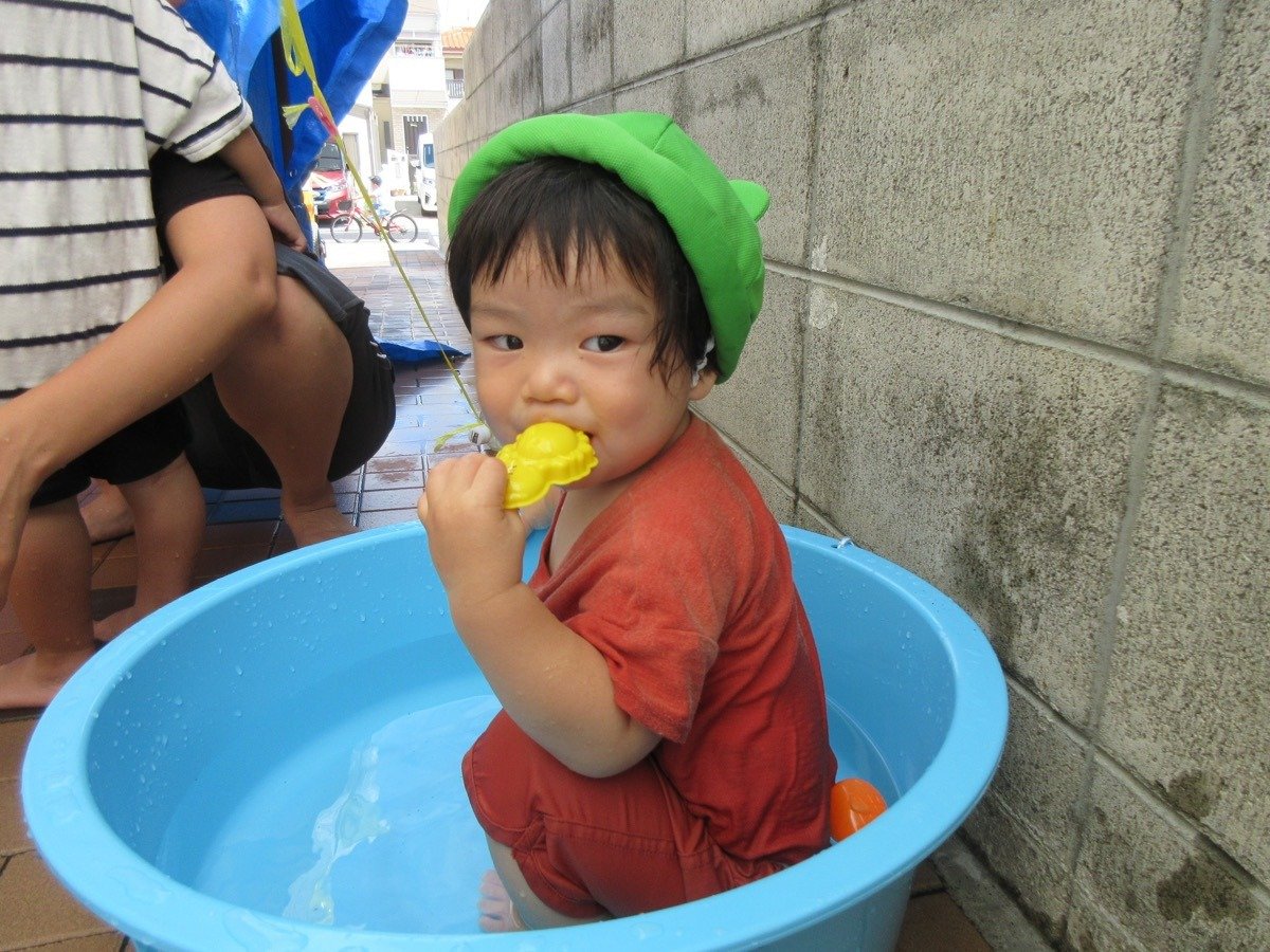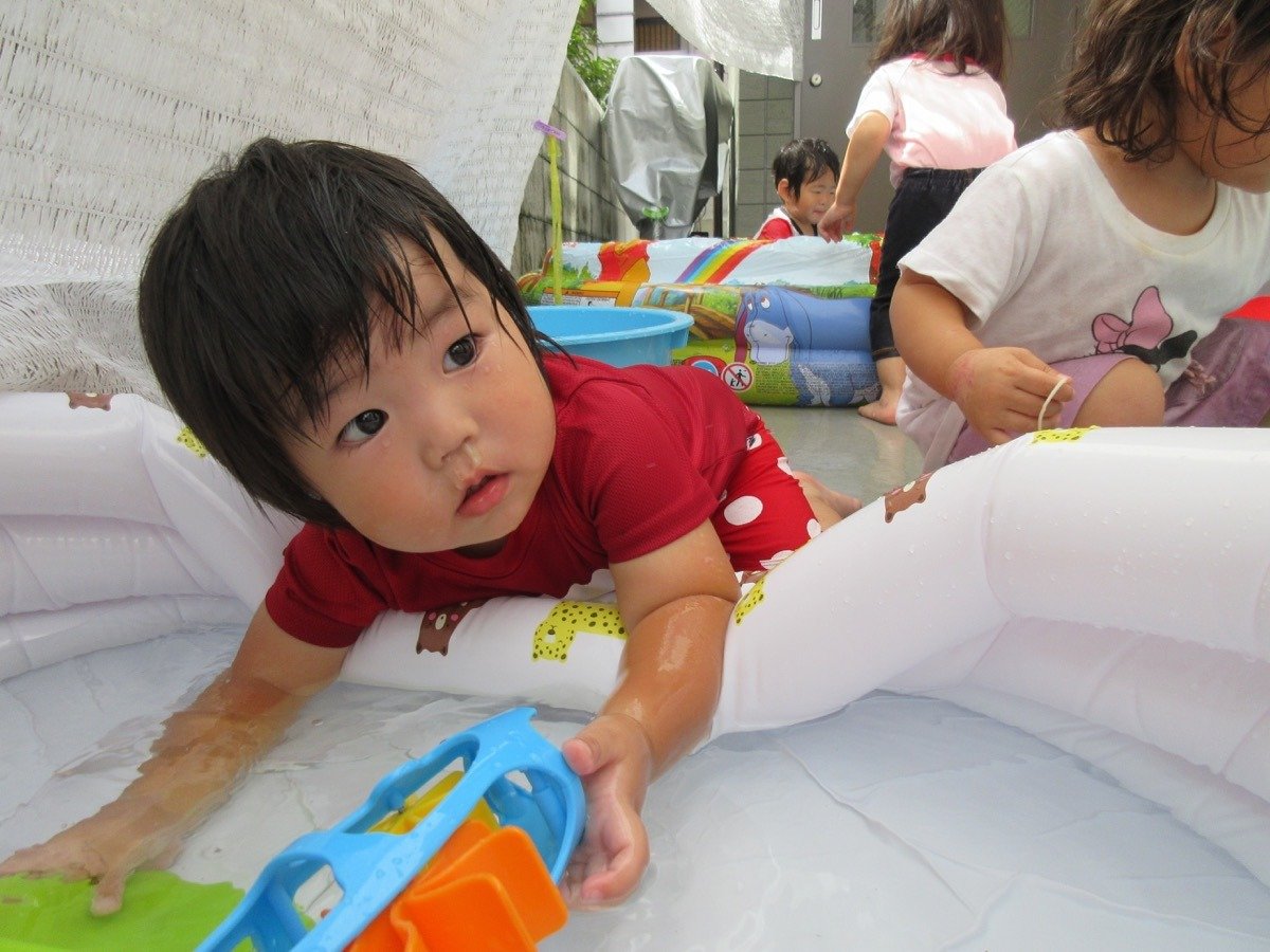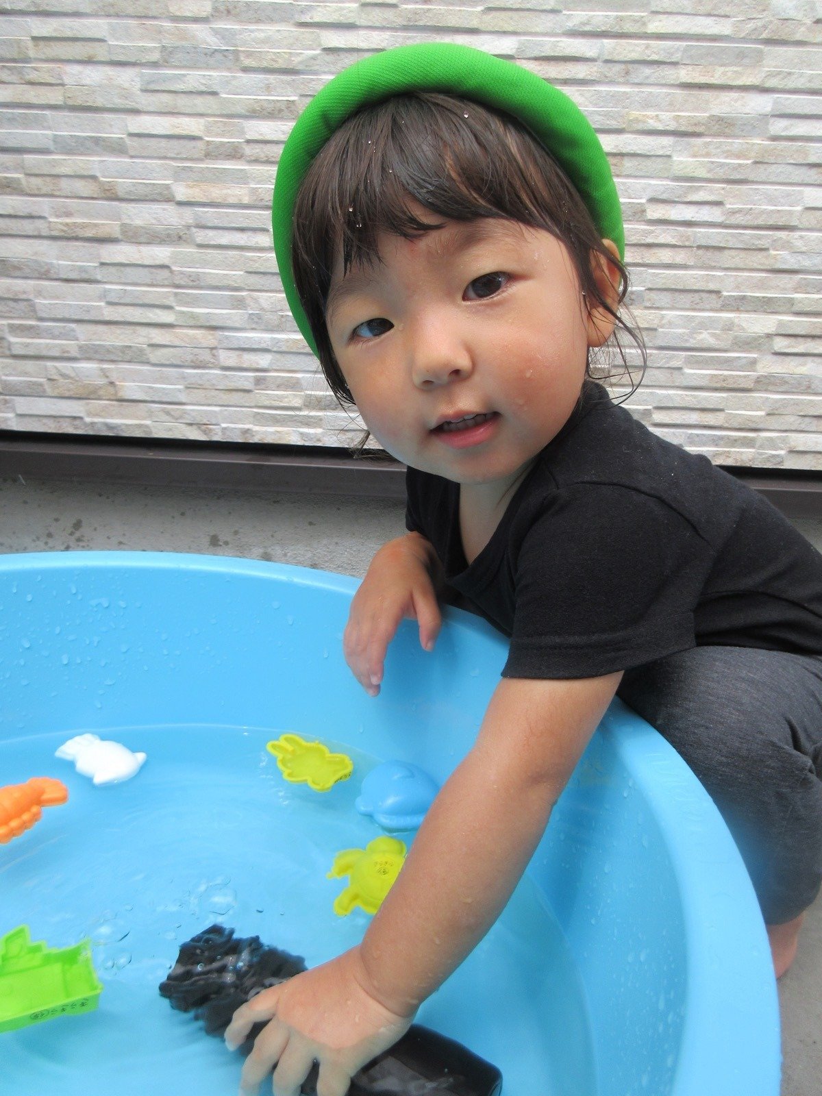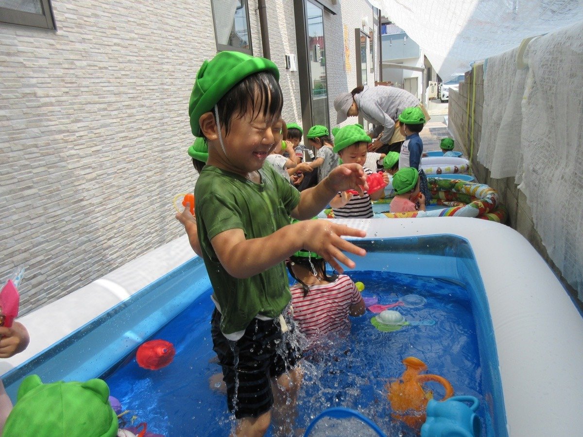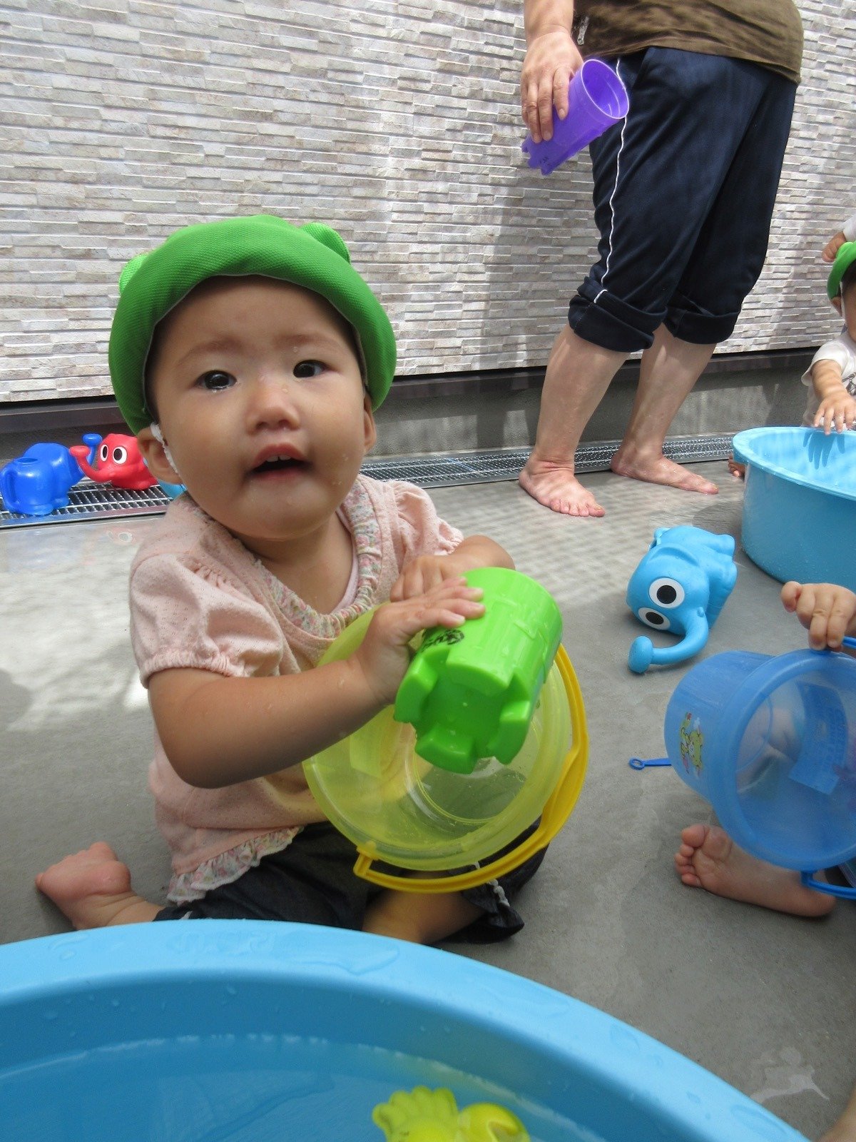 初めは水を怖がっていた子も、少しずつ慣れ、水のかけあいっこを楽しめるまでになりました。