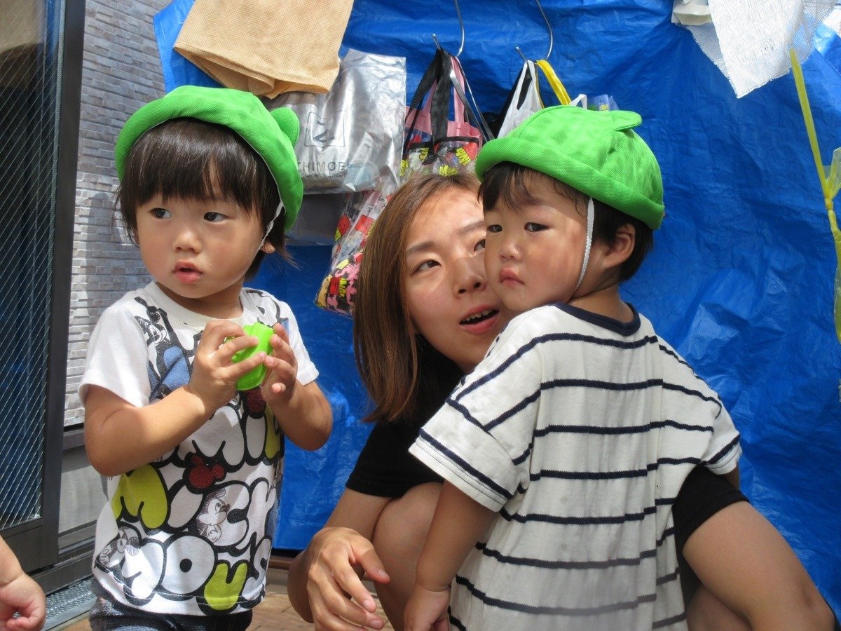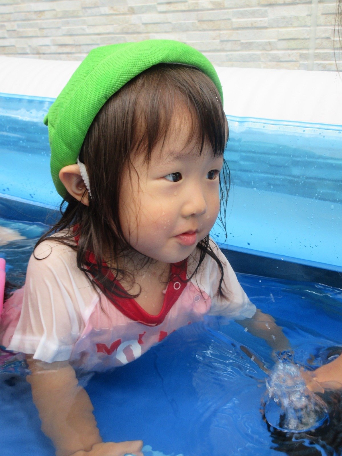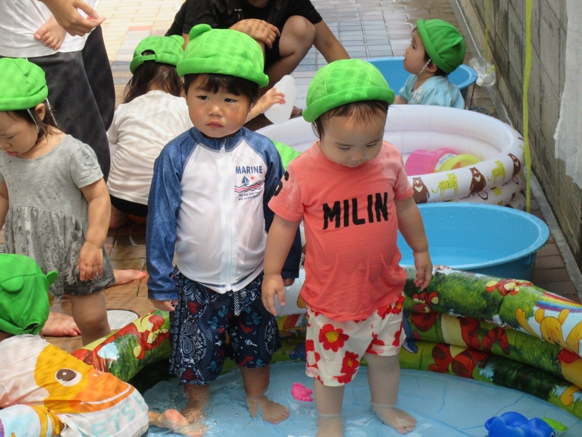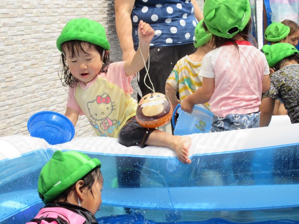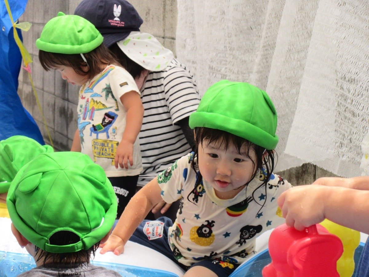 初めは水を怖がっていた子も、少しずつ慣れ、水のかけあいっこを楽しめるまでになりました。