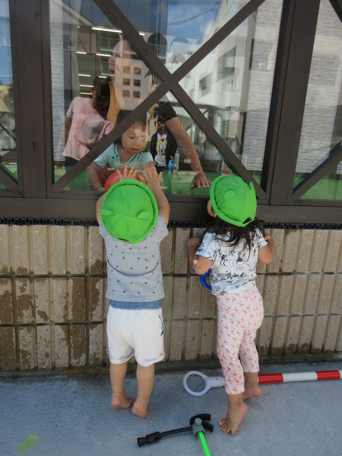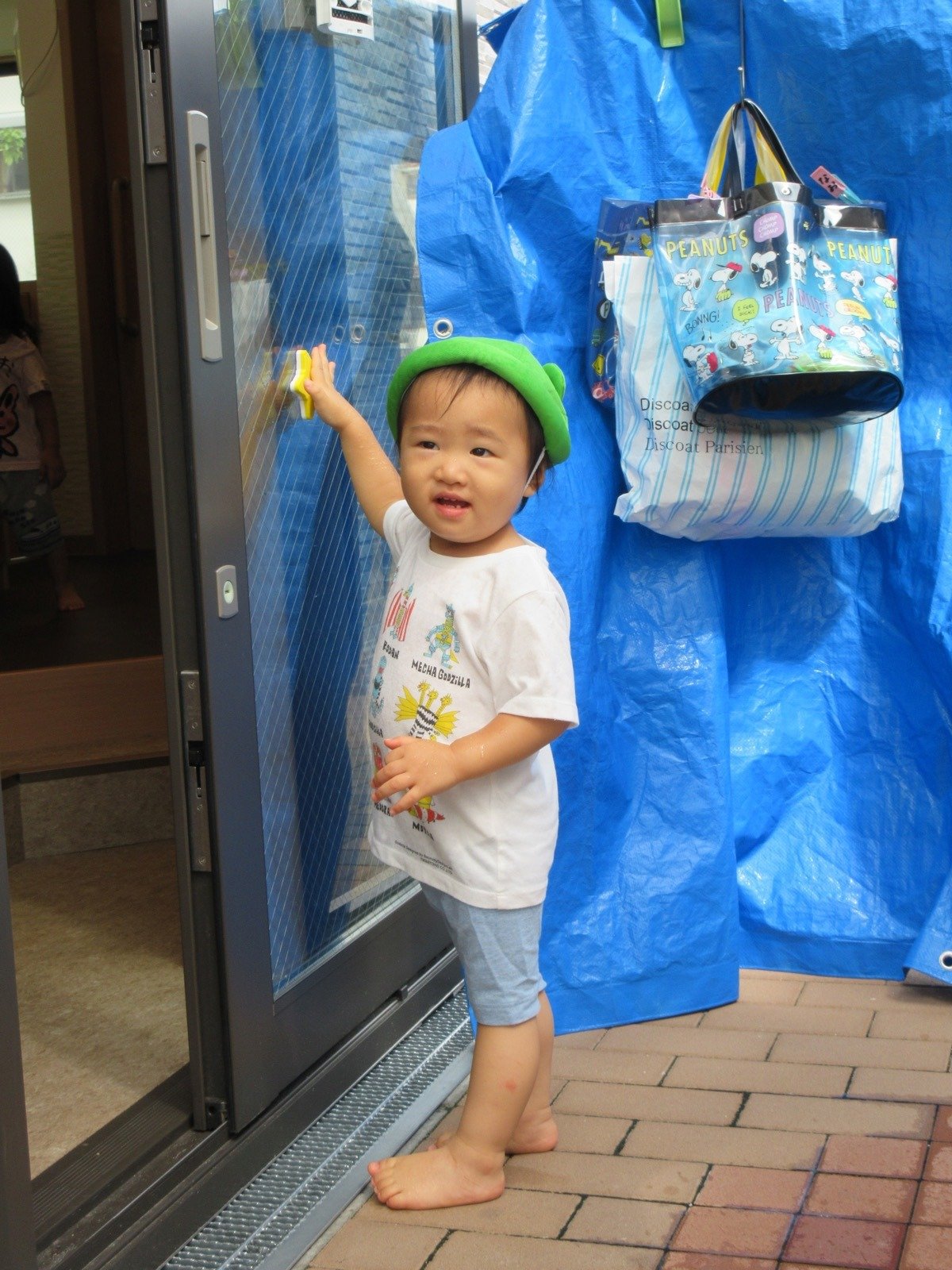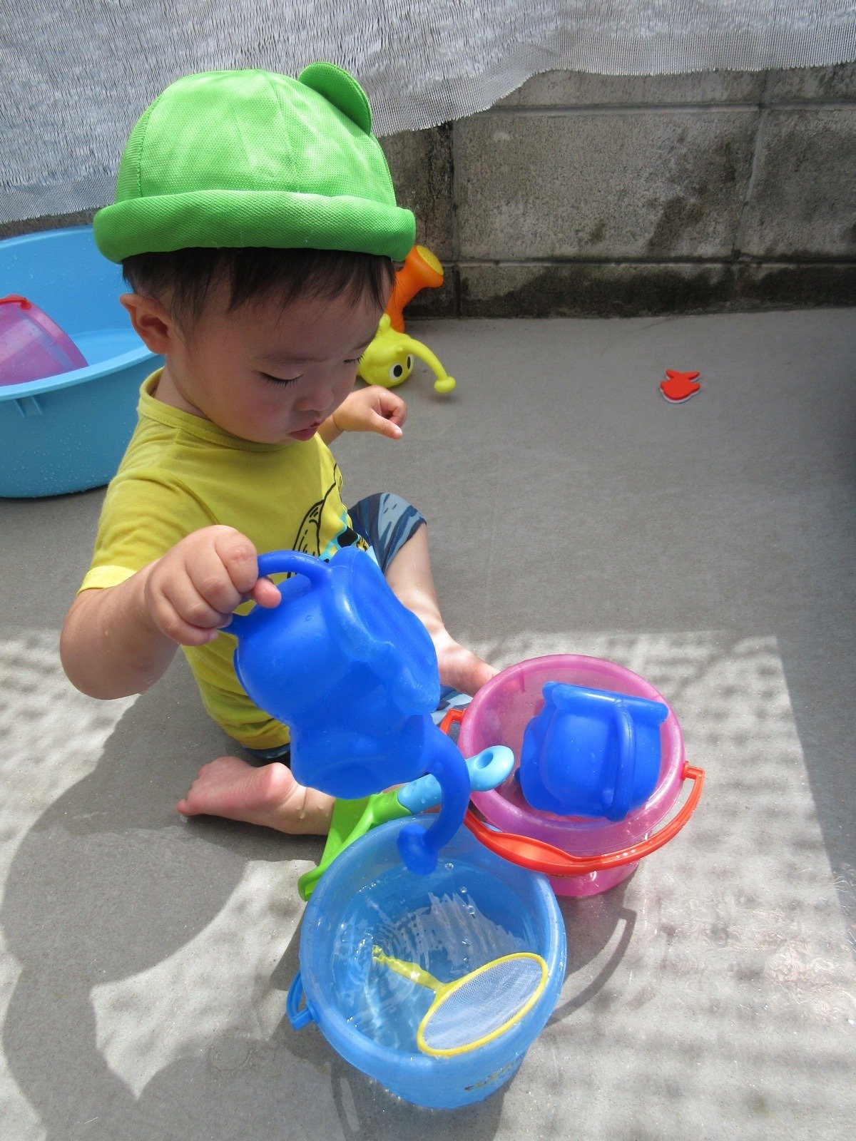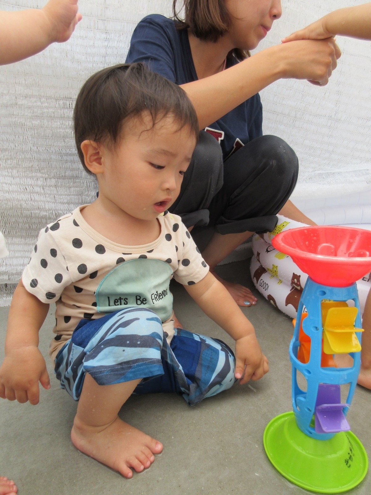初めは水を怖がっていた子も、少しずつ慣れ、水のかけあいっこを楽しめるまでになりました。