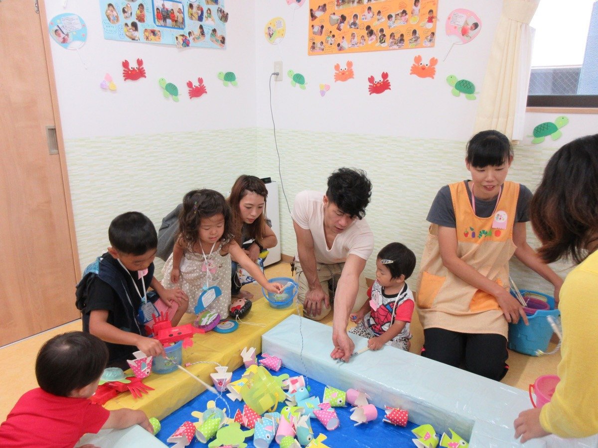 ゲームコーナーでは、お面を作ったり、お魚釣りをしたり、楽しそうな姿がたくさん♡
