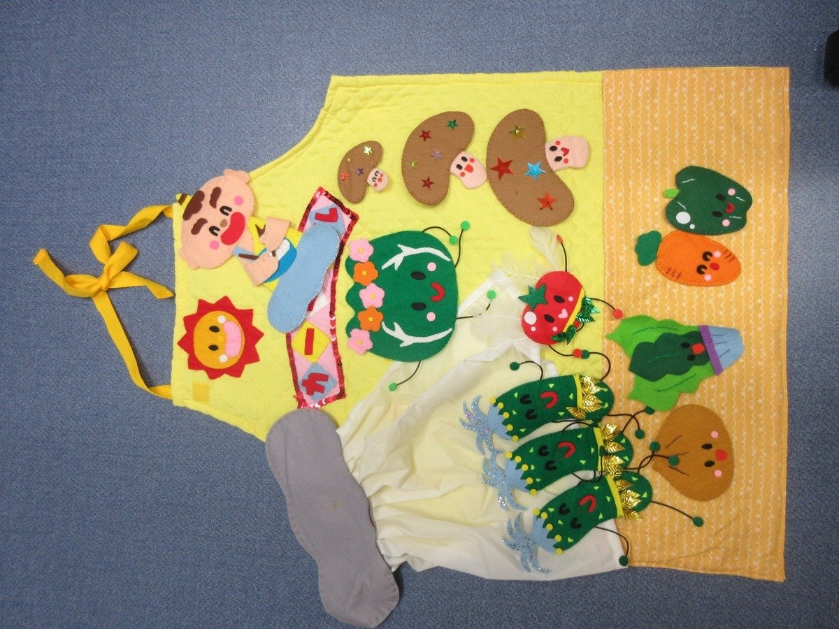 「さぁ、このエプロンから、どんなお話がでてくるかな?」の声に、