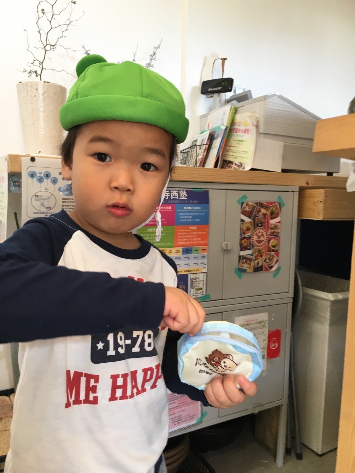 朝から、「くま組さんは、お買い物に行くねんで!」と、小さなお友達や先生に嬉しそうに話す姿が可愛い♡