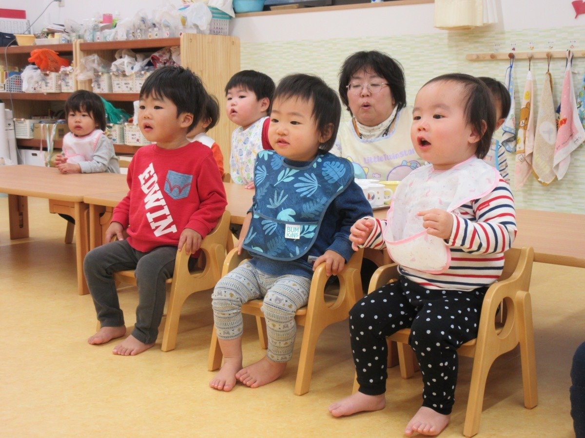 おむすびころりんスットントン♪のリズムに合わせて、体を揺らしているお友達も…(^^♪
