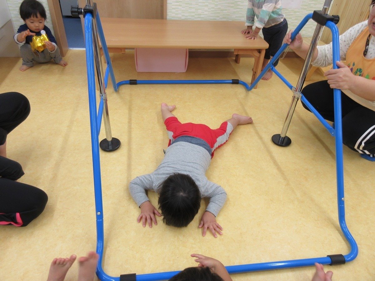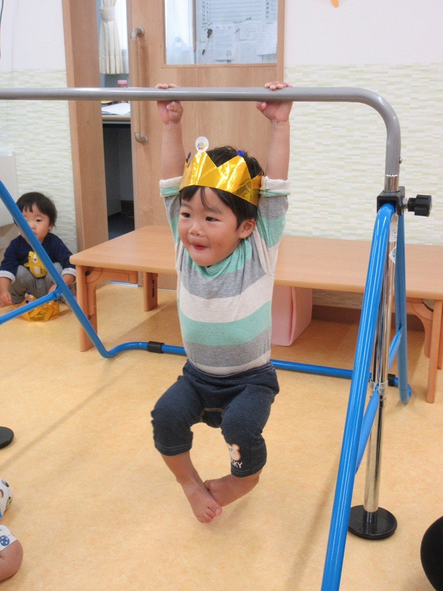 そんな2人の特技は、鉄棒! みんなの前で上手にぶら~んとぶら下がりましたよ♪