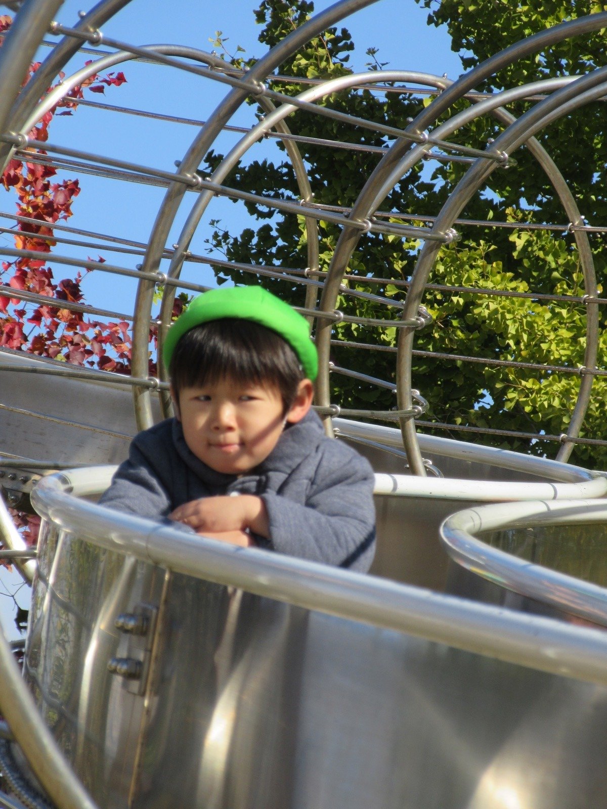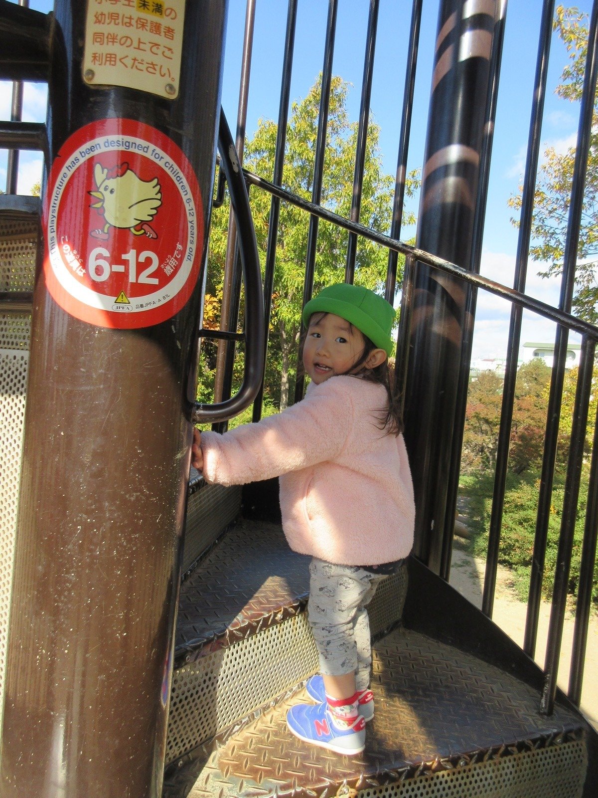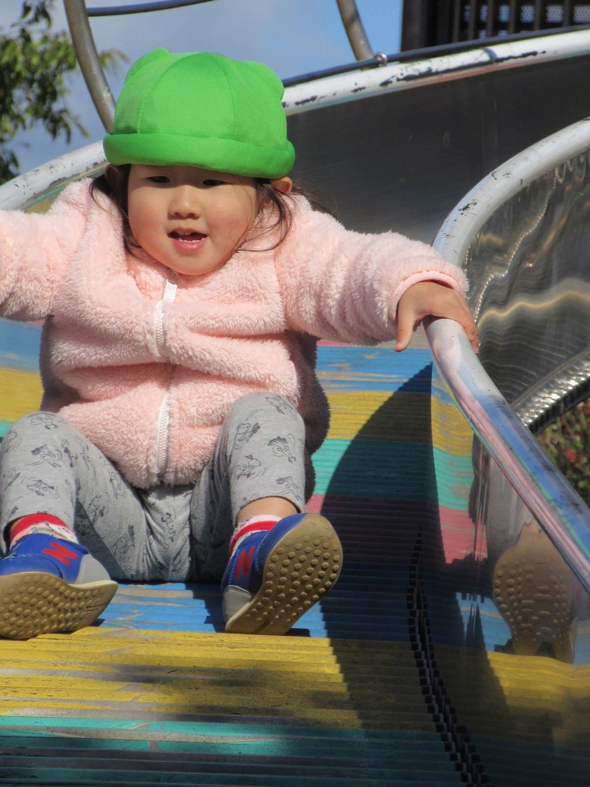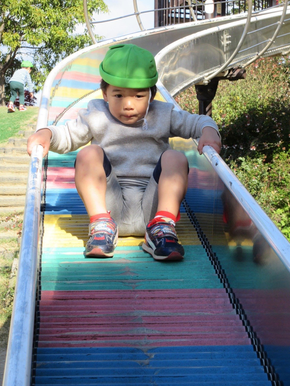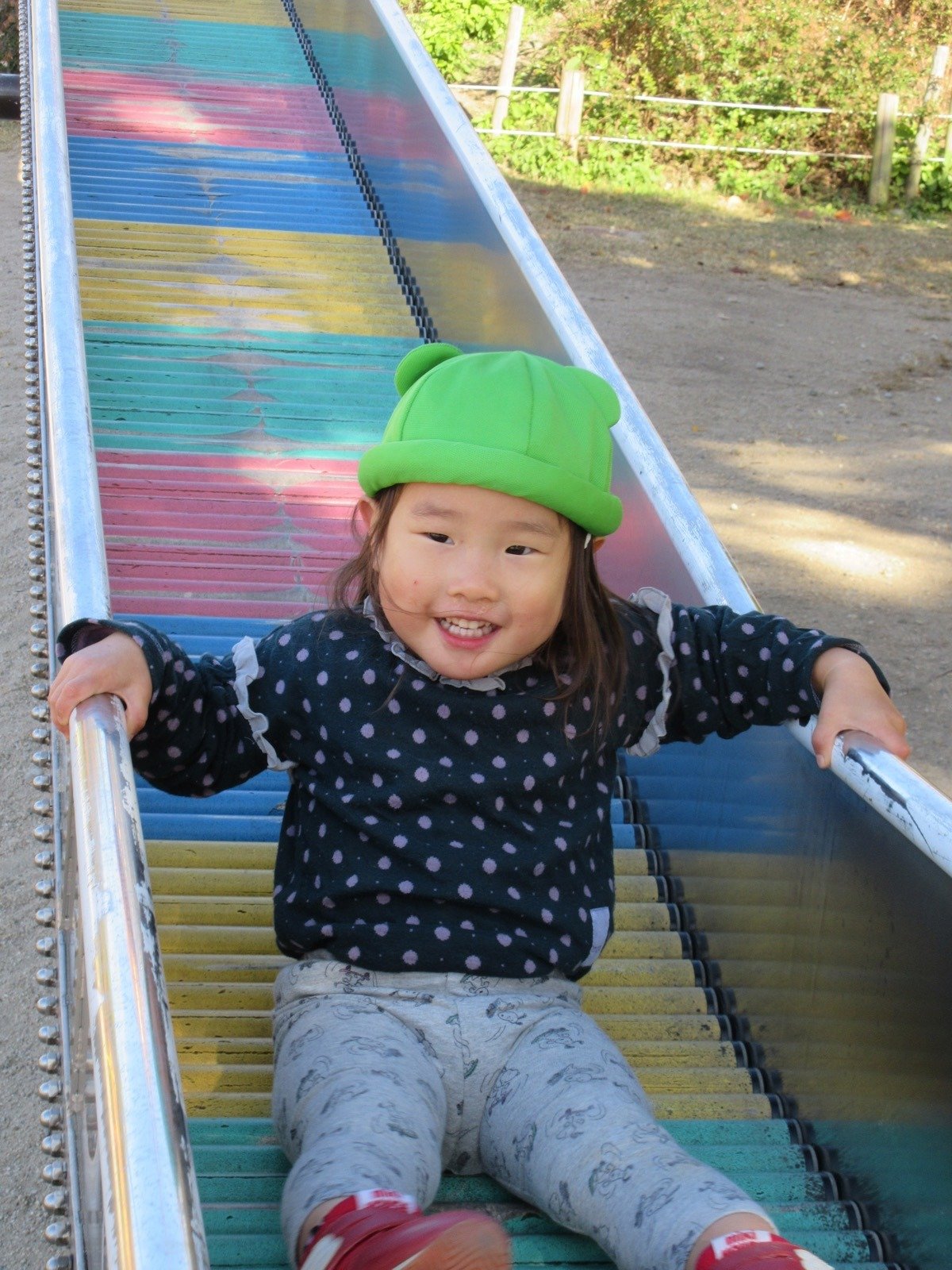 ローラーすべり台にまっしぐらに走り、滑り降りると、「おしりが かゆ~い!」(笑)
