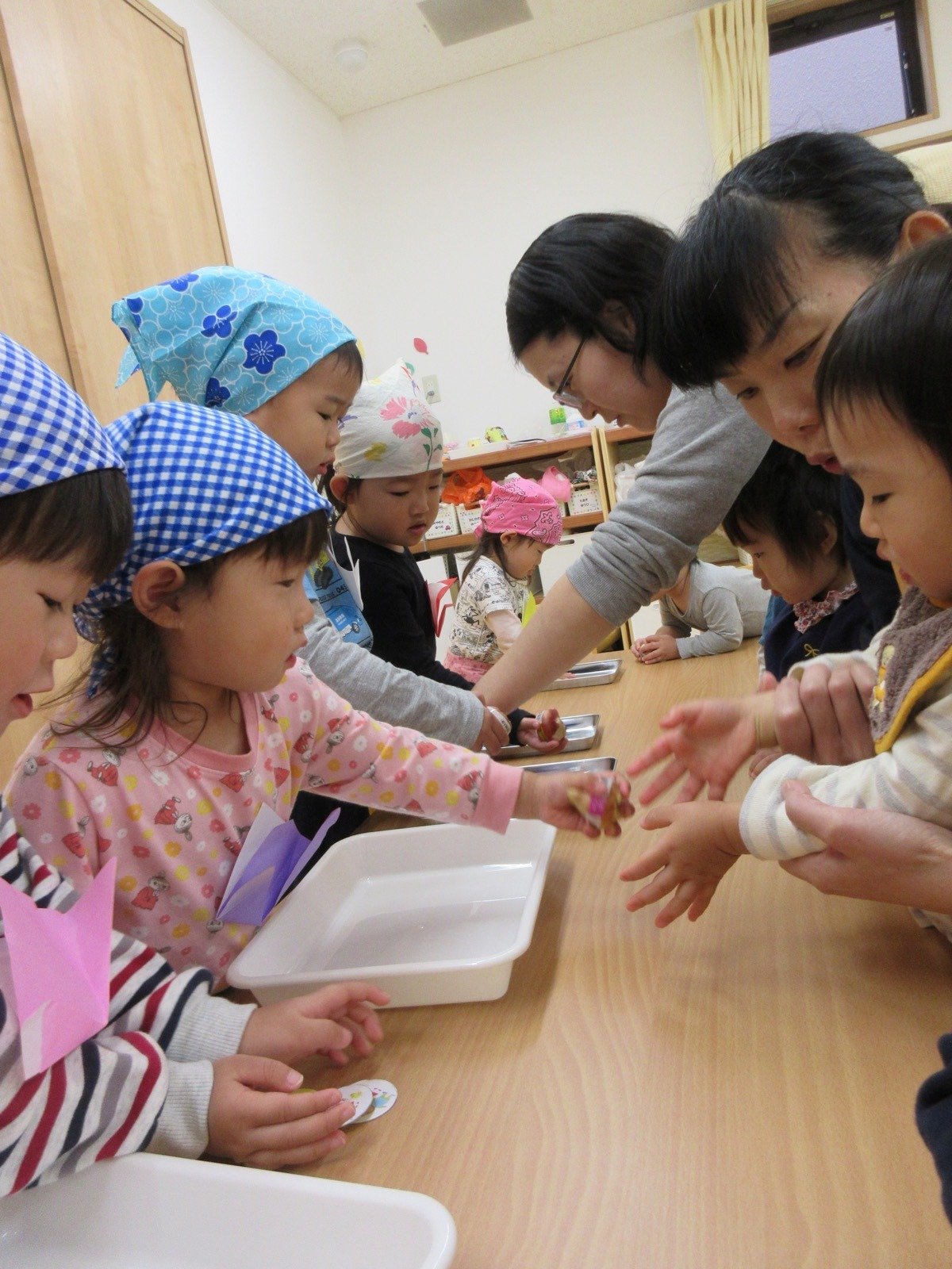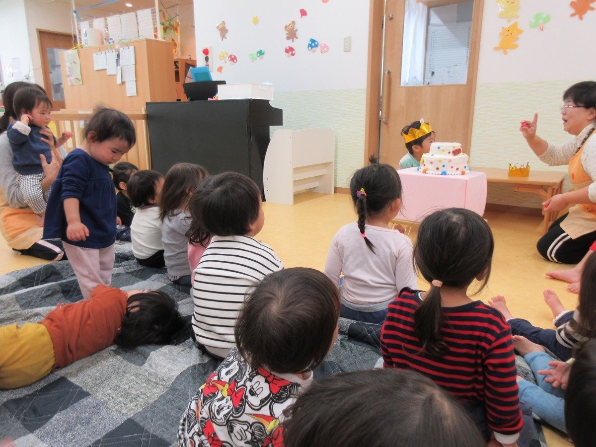 1歳児うさぎ組のお友達、2人が2歳になりました。